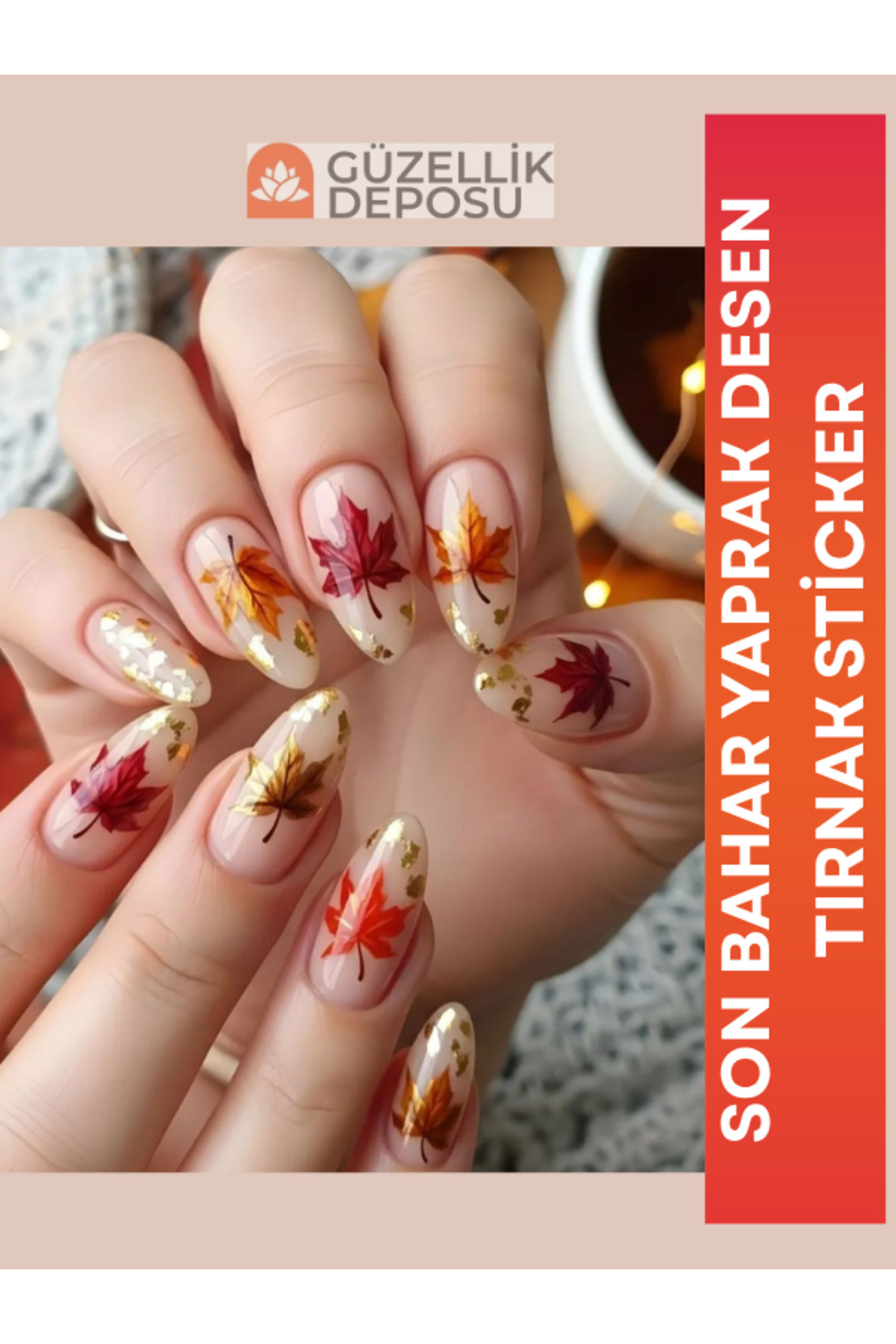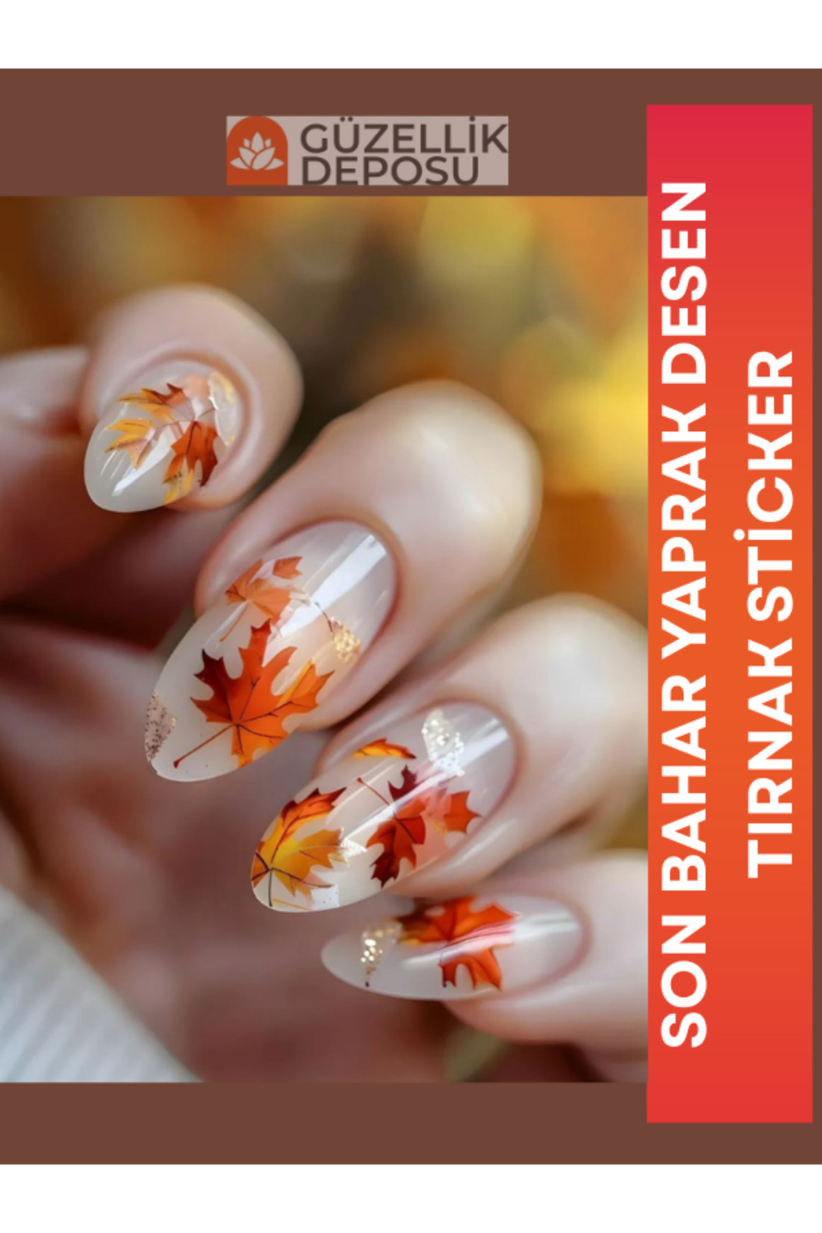 Sonbahar Yaprak Desen Tırnak Sticker Sonbahar Yaprak Desen Tırnak Sticker GZLTRNK554522 تک سایز