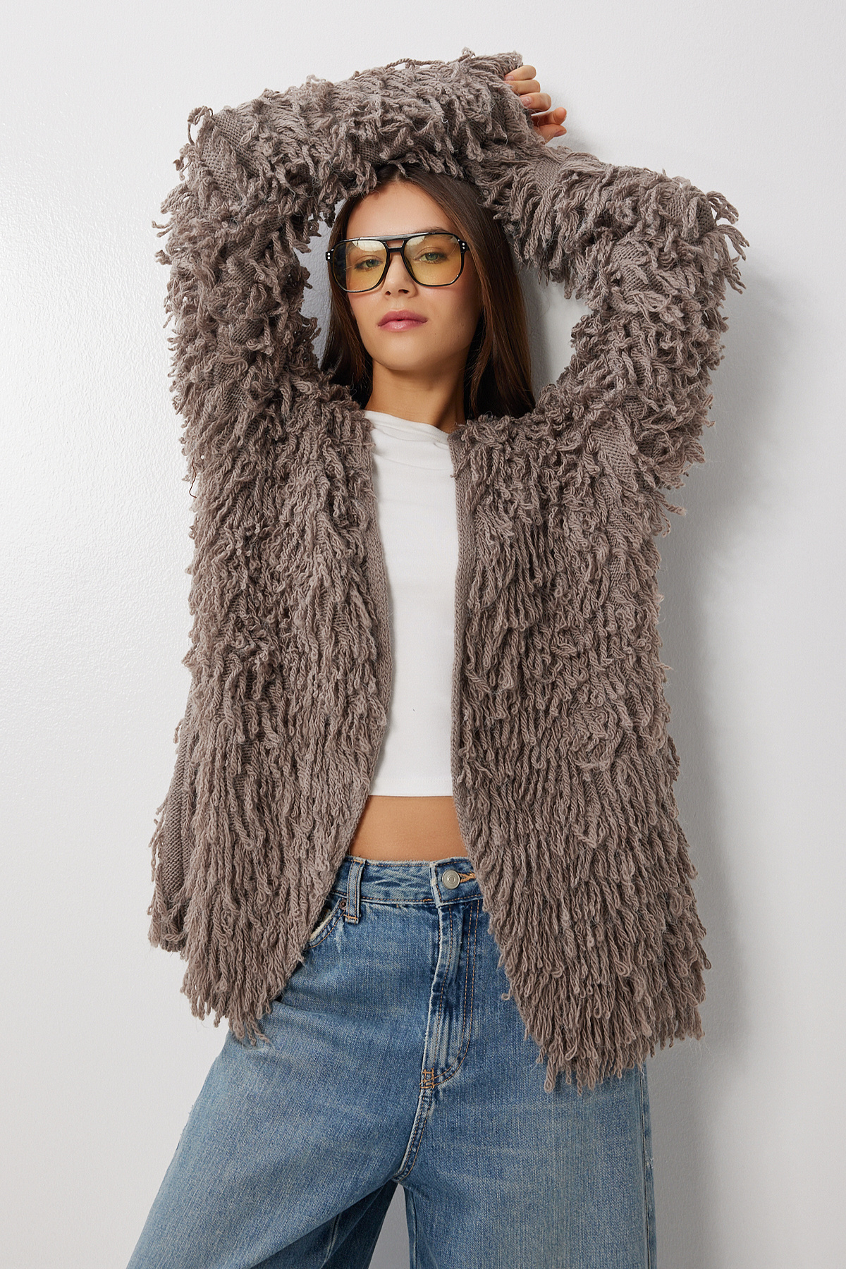 Dore Düğmeli Triko Hırka LKİ0048 KAHVERENGİ Dore Düğmeli Triko Hırka LKİ0048 KAHVERENGİ Standart