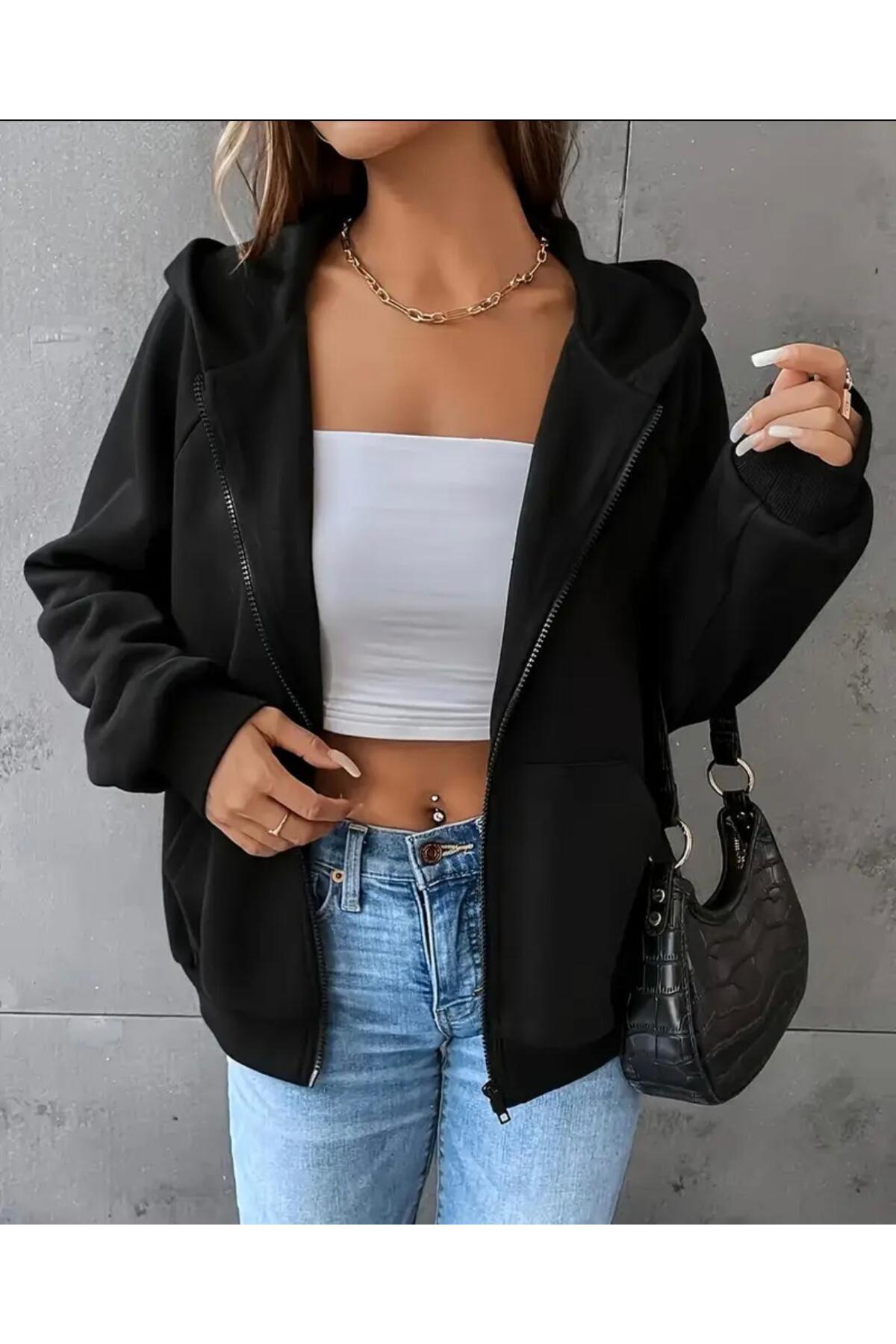Kadın Basic 3 iplik Kanguru Cepli Organik Pamuk Fermuarlı Kapüşonlu Siyah Sweatshirt Kadın Basic 3 iplik Kanguru Cepli Organik Pamuk Fermuarlı Kapüşonlu Siyah Sweatshirt 00004 2XL