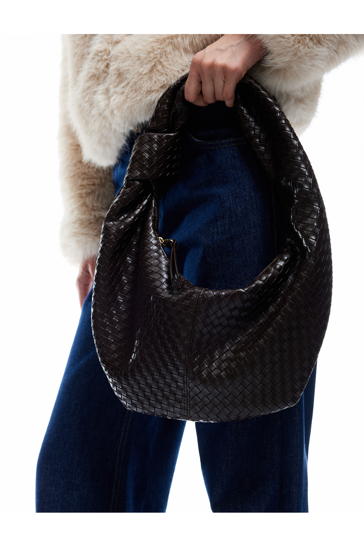 Örgü Dokulu Metal Tokalı Saplı Askılı Omuz Çantası Örgü Dokulu Metal Tokalı Saplı Askılı Omuz Çantası 6WAK30045AA تک سایز