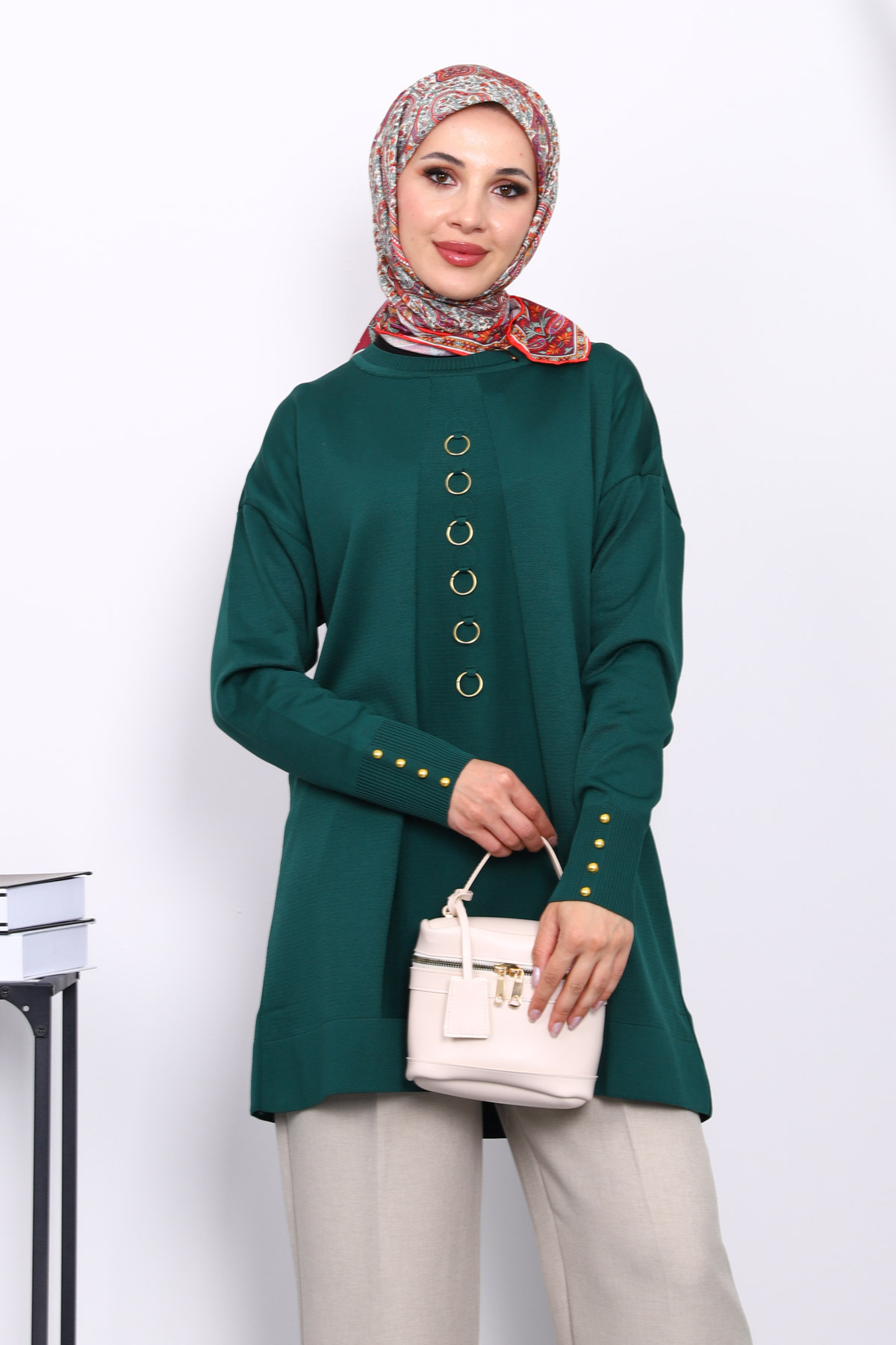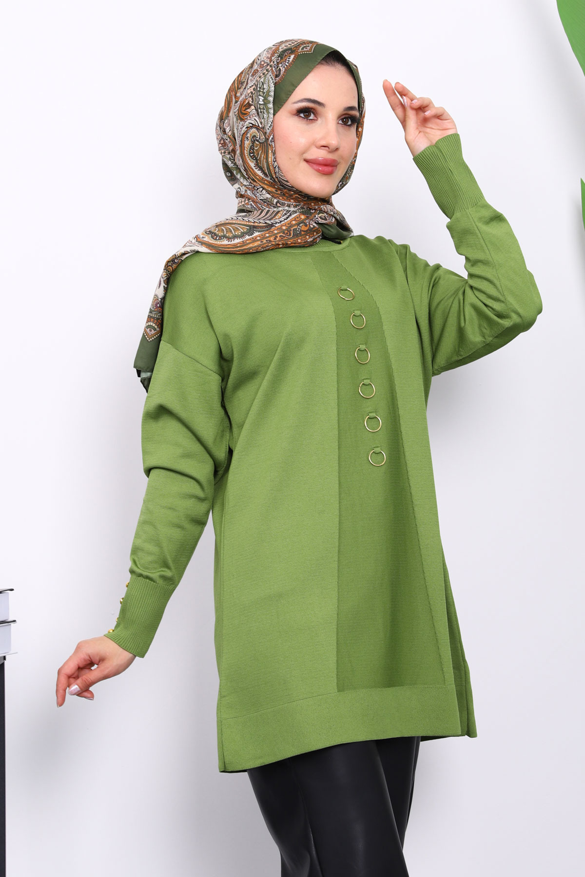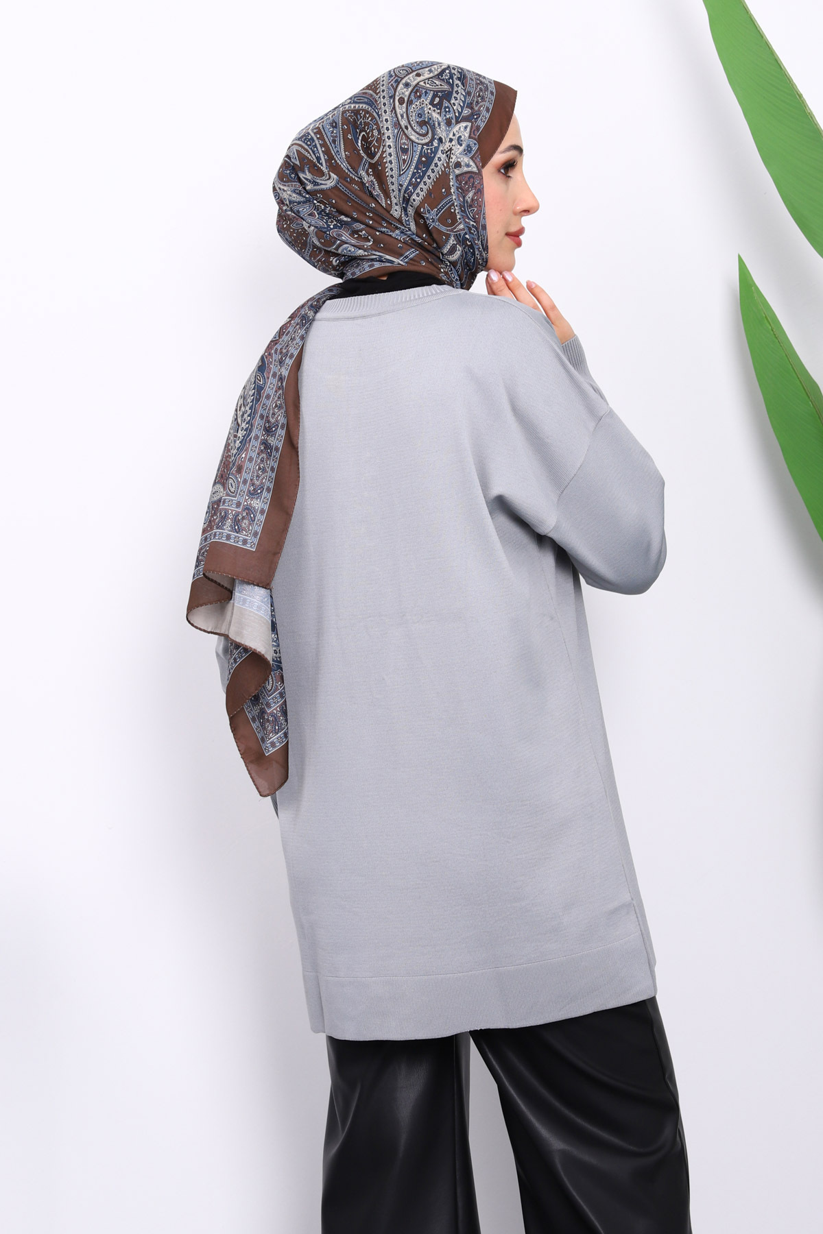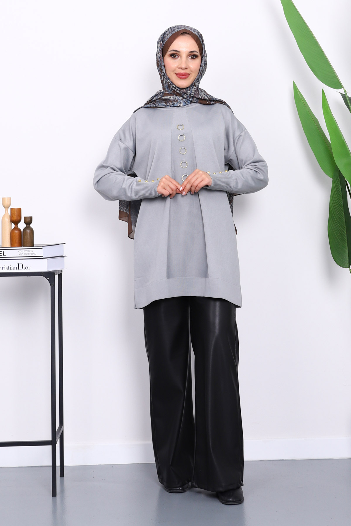 Gri Ön Detaylı Soğuk İplik Triko Tunik Gri Ön Detaylı Soğuk İplik Triko Tunik IMJ007457 Standart