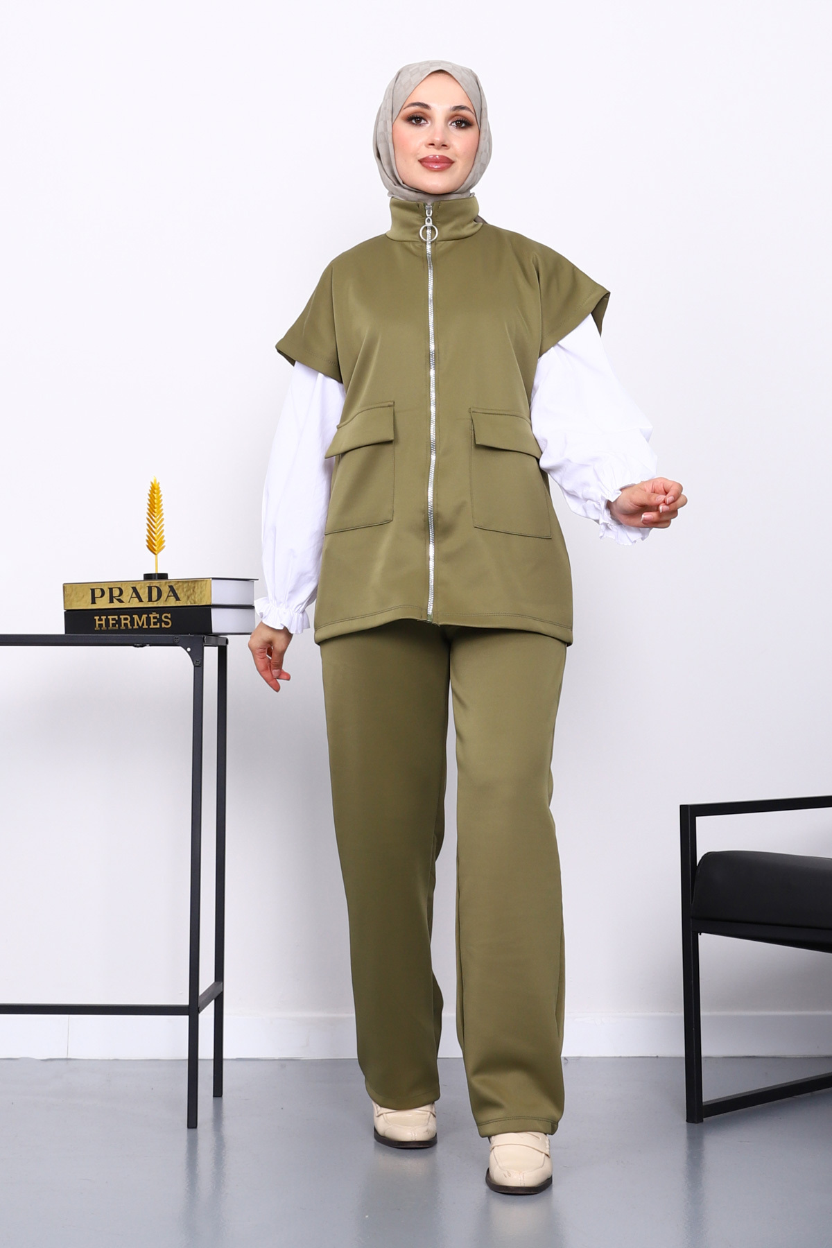 Kahverengi Fermuarlı Tunik Pantolonlu Scuba Takım Kahverengi Fermuarlı Tunik Pantolonlu Scuba Takım IMJ007955 2