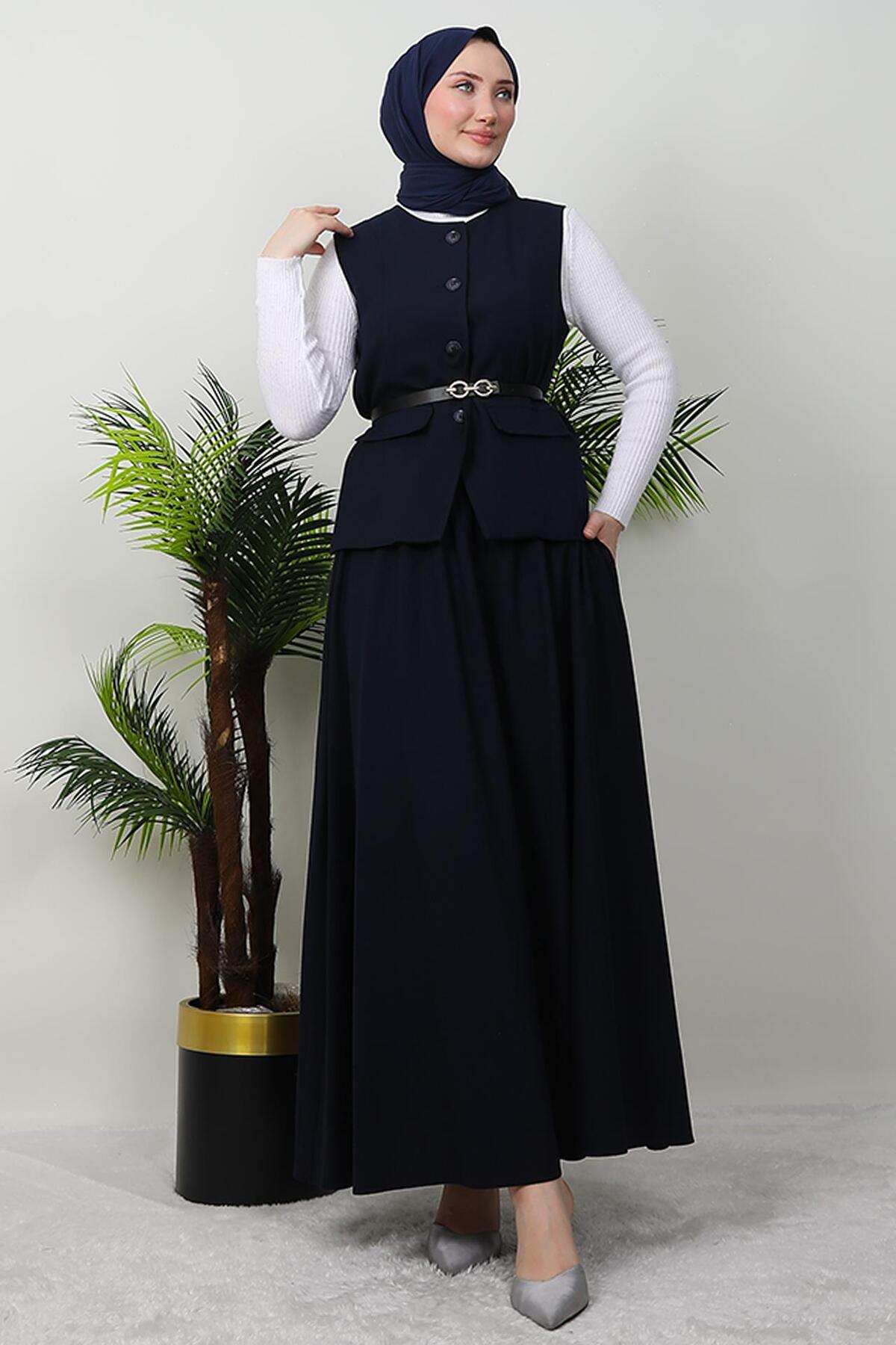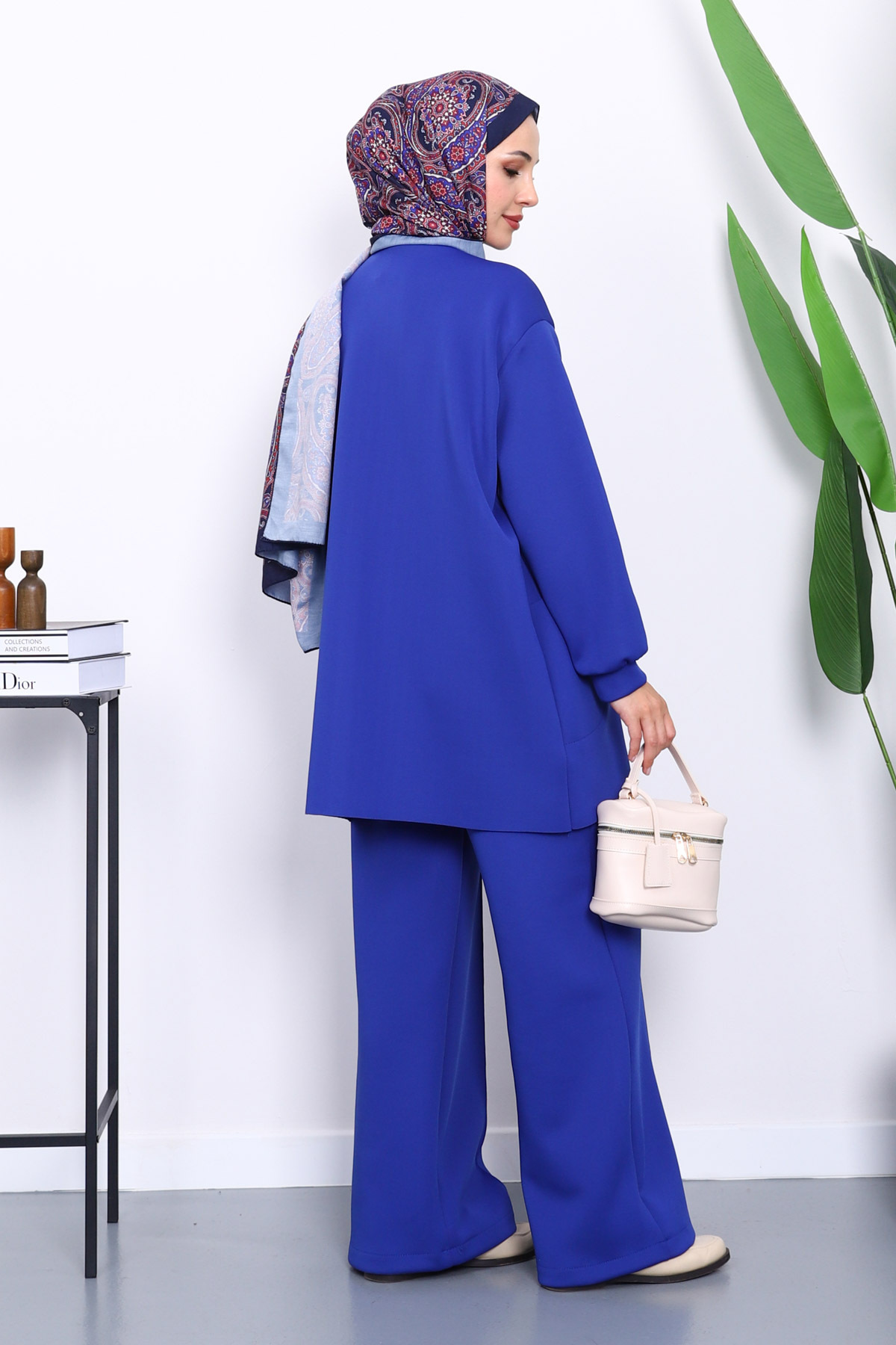 Saks Mavi Fermuarlı Tunik Pantolonlu Scuba Takım Saks Mavi Fermuarlı Tunik Pantolonlu Scuba Takım IMJ007955 2