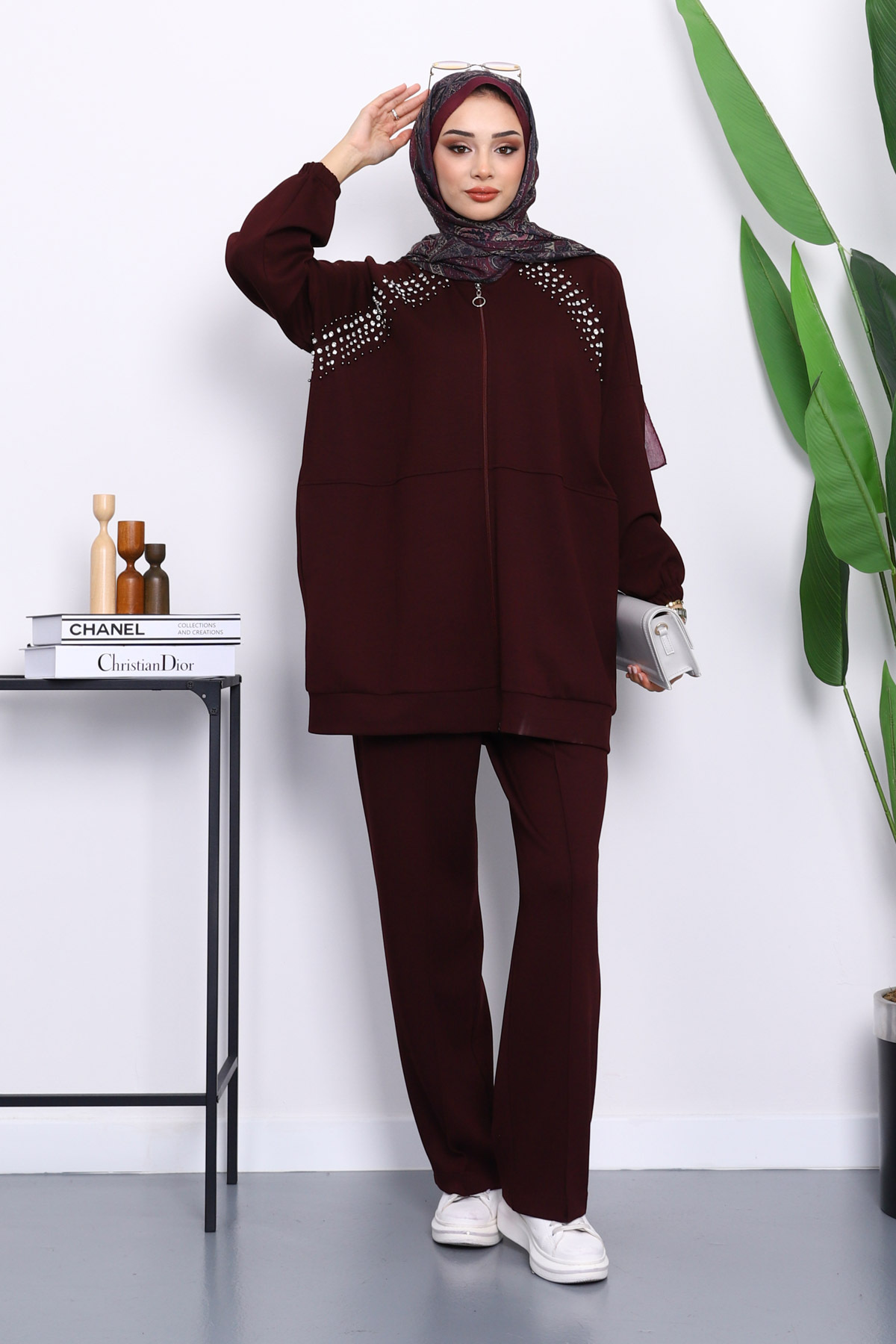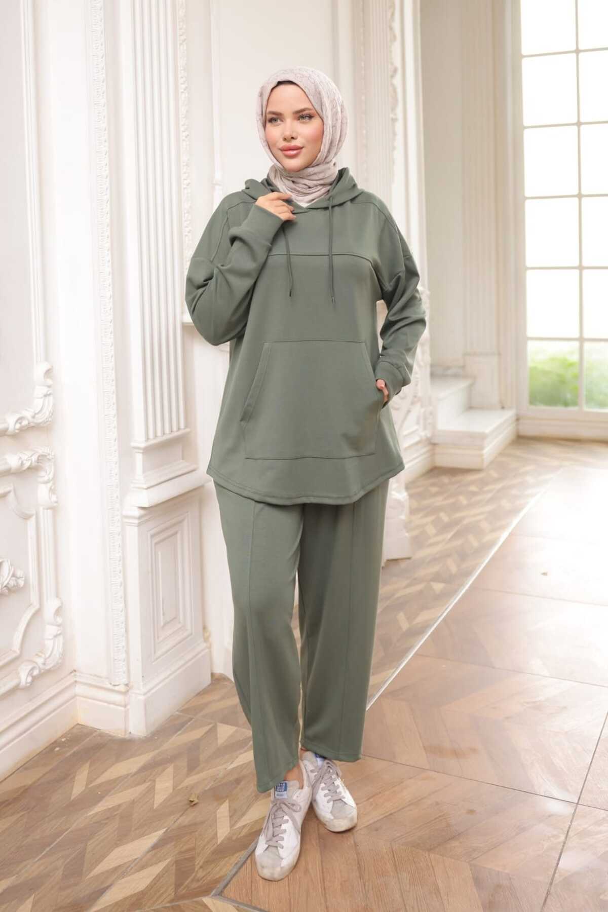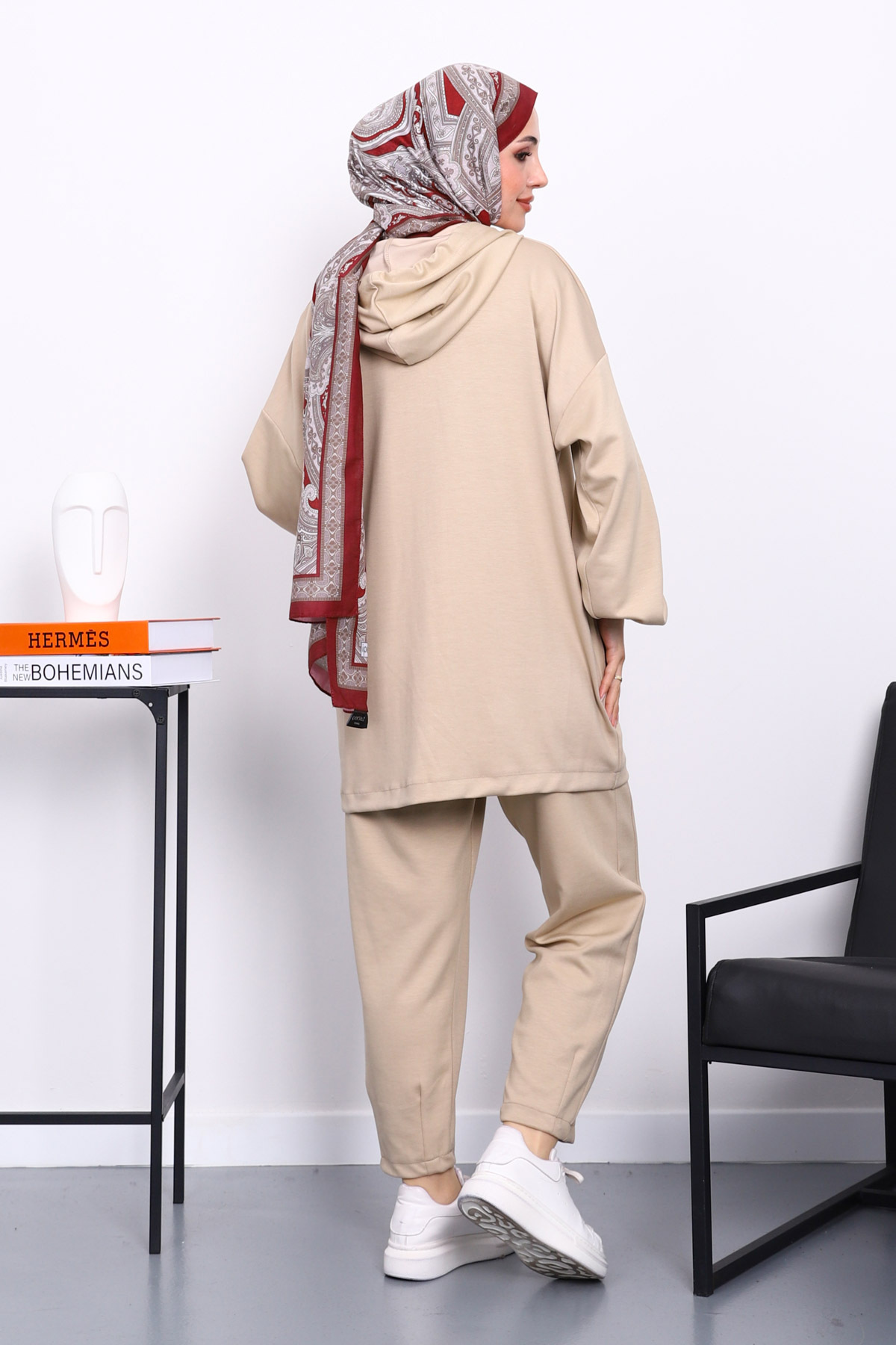Bej Kapşonlu Fermuarlı Tunik Pantolonlu Takım Bej Kapşonlu Fermuarlı Tunik Pantolonlu Takım IMJ008086 2