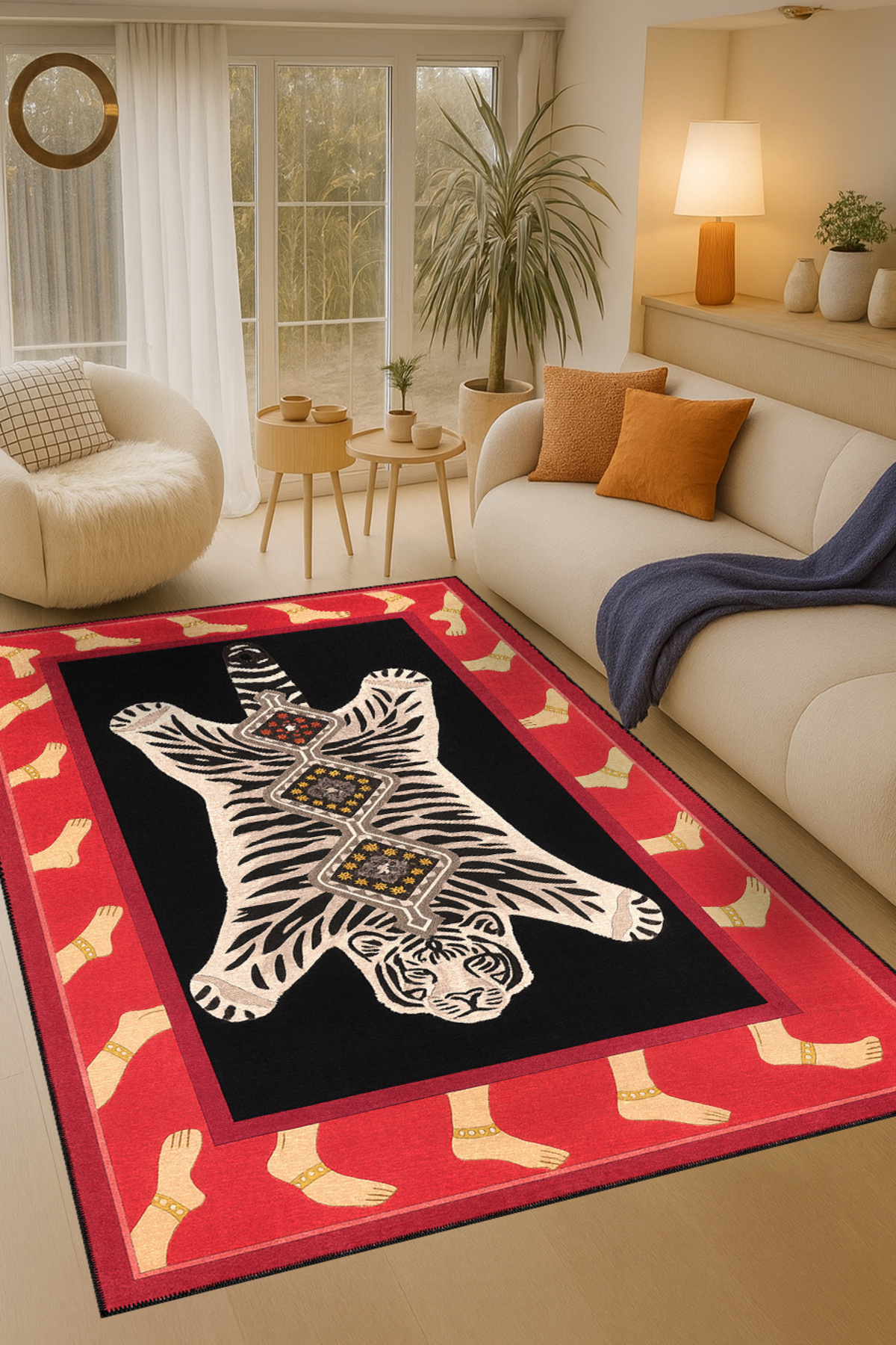 MOSSO Kaplan Temalı Desen Dokuma Taban Vintage Dekoratif Halı mosso1249 MOSSO Kaplan Temalı Desen Dokuma Taban Vintage Dekoratif Halı mosso1249 100 x 300