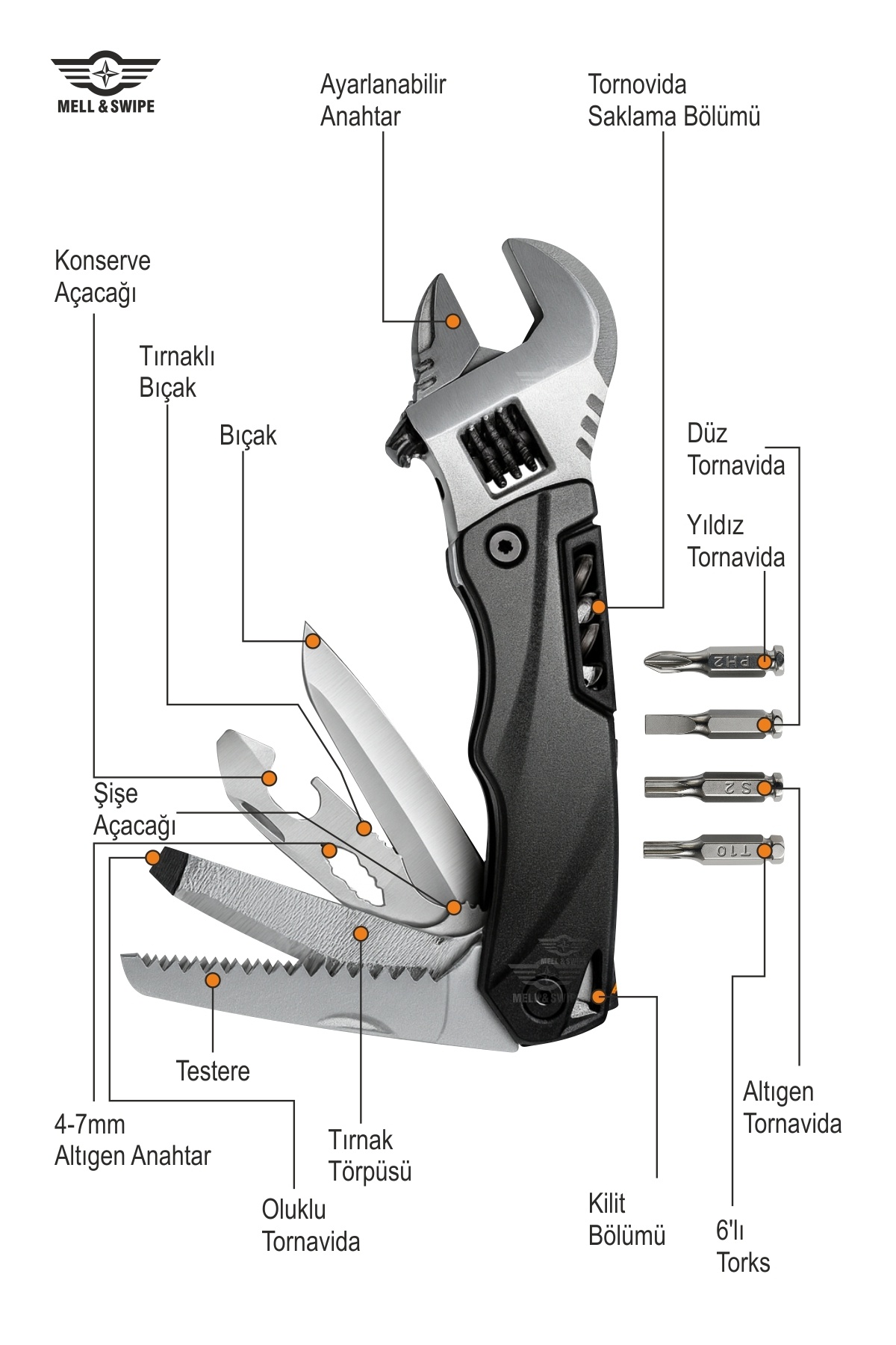 7 Çok Fonksiyonlu Paslanmaz İngiliz Anahtarı Siyah-Gümüş İsviçre Kamp Cep Çakısı 7 Çok Fonksiyonlu Paslanmaz İngiliz Anahtarı Siyah-Gümüş İsviçre Kamp Cep Çakısı MEL9632S تک سایز
