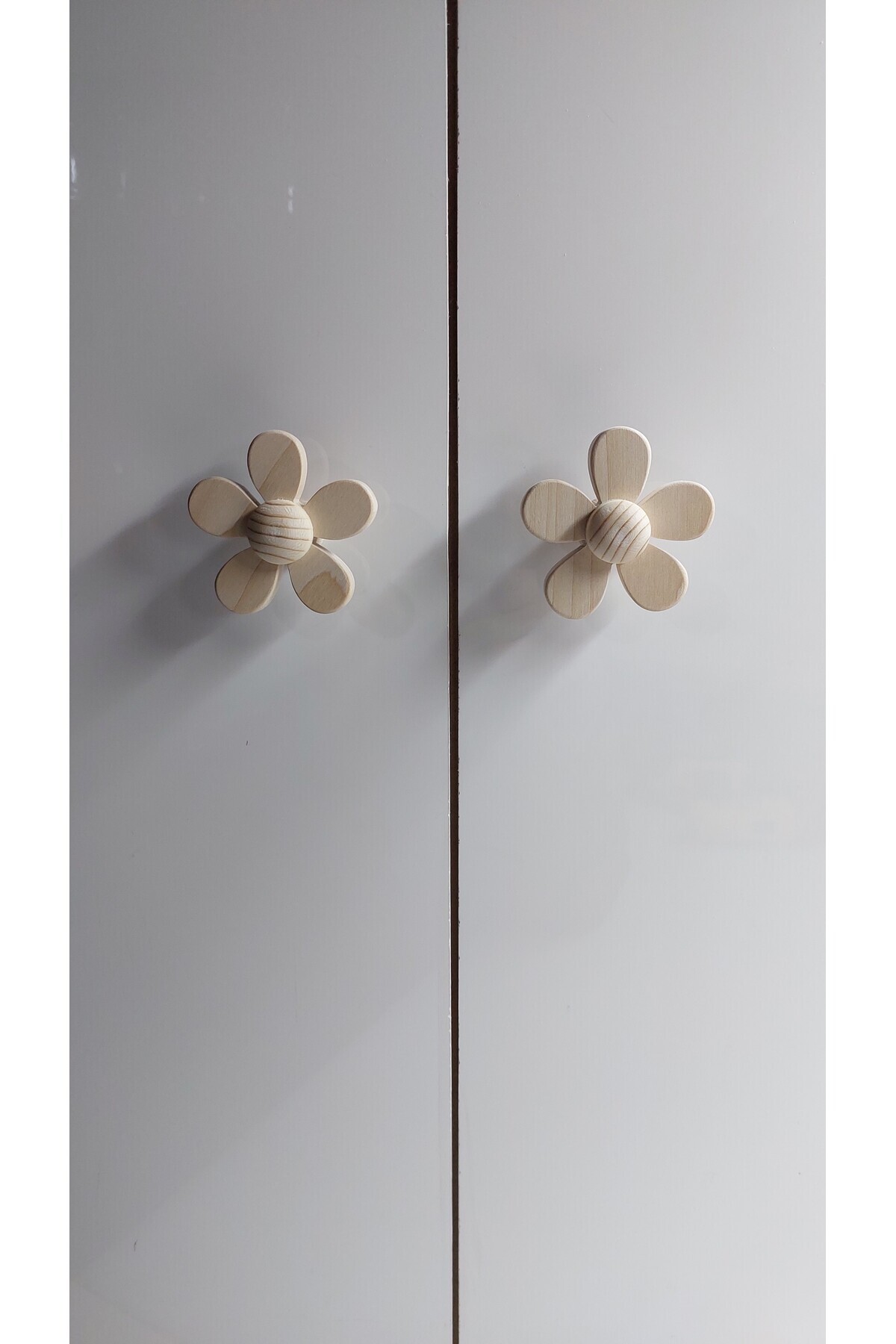 Çiçek dolap kulpu 2'li bebek çocuk odası şifonyer kulpu, çiçek figürlü çekmece kulp Çiçek dolap kulpu 2'li bebek çocuk odası şifonyer kulpu, çiçek figürlü çekmece kulp Y26550 تک سایز