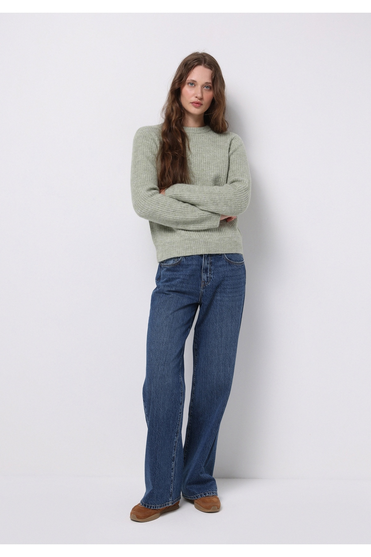 Regular Fit Yuvarlak Yaka Düz Kadın Yeşil Kazak Regular Fit Yuvarlak Yaka Düz Kadın Yeşil Kazak CL1076705_Q1.V1 L