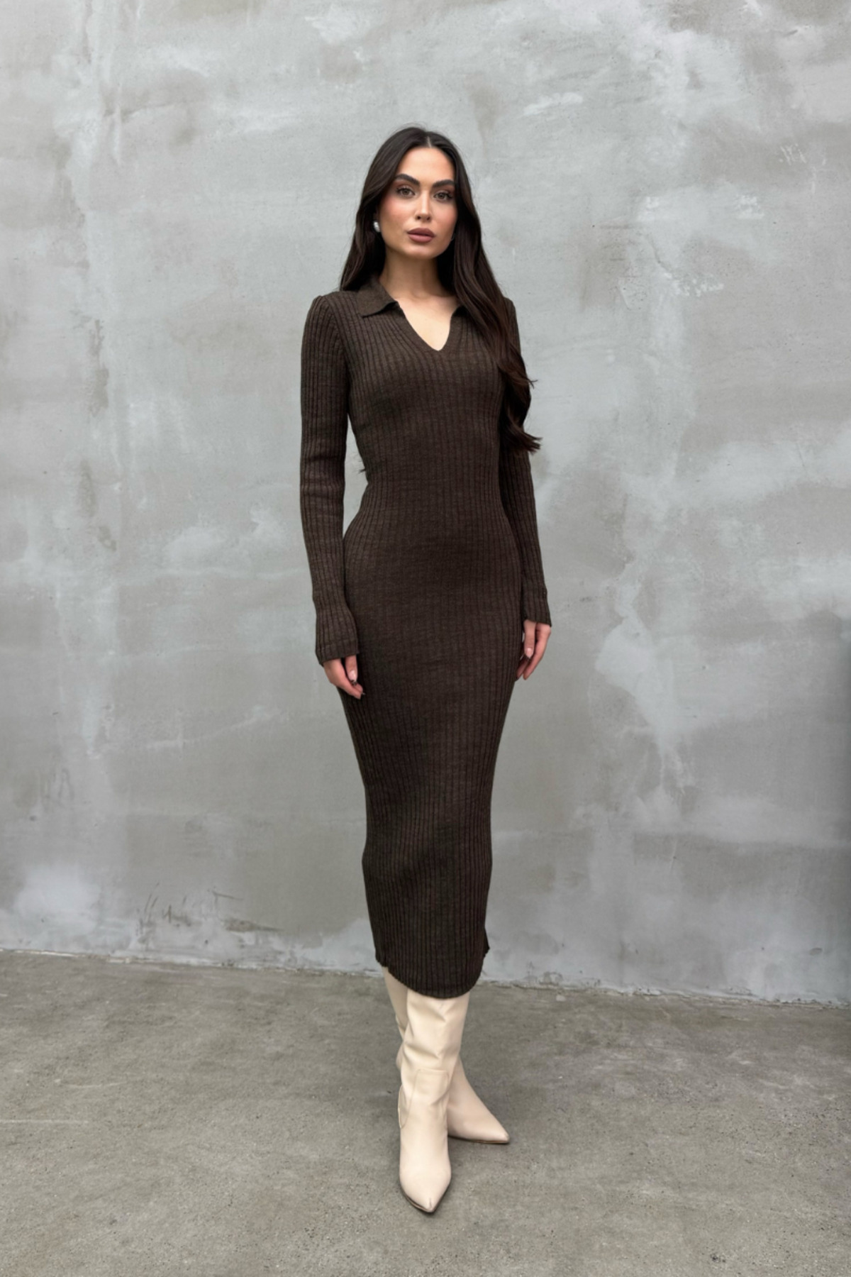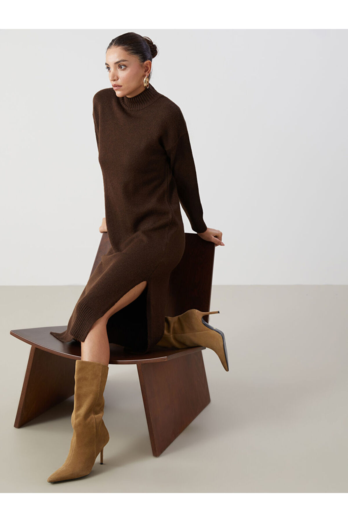 Kahverengi Yarım Balıkçı Yaka Kadın Triko Elbise Kahverengi Yarım Balıkçı Yaka Kadın Triko Elbise W4KE45Z8 S