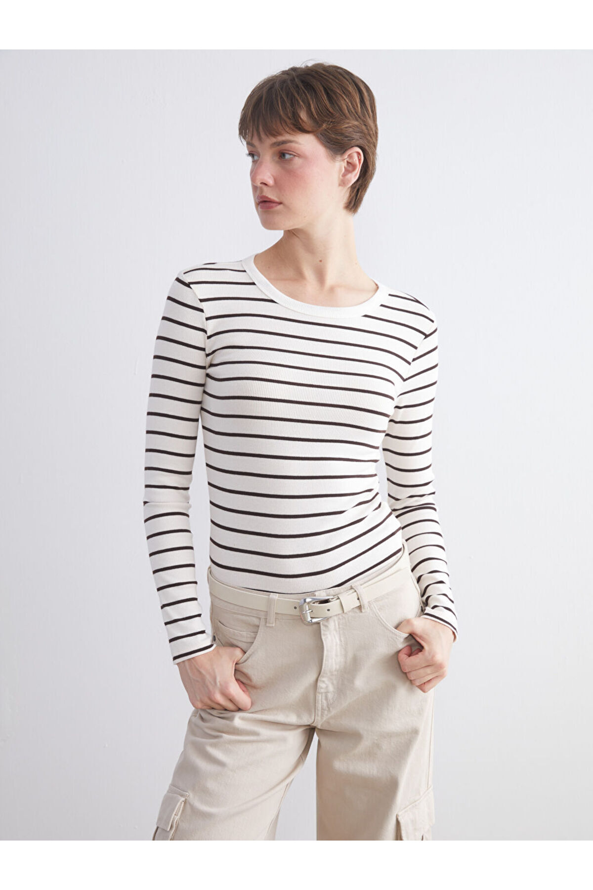 Haki Bisiklet Yaka Çizgili Kadın Body Haki Bisiklet Yaka Çizgili Kadın Body W57973Z8 4