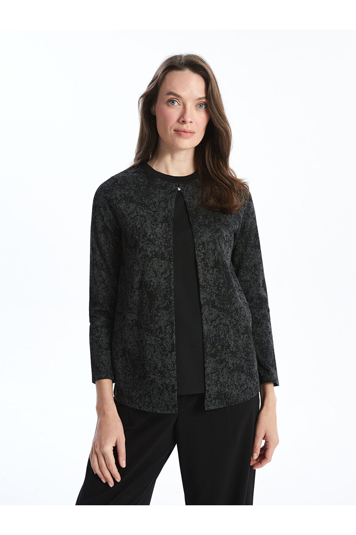Siyah Bağlamalı Yaka Desenli Kadın Bluz Siyah Bağlamalı Yaka Desenli Kadın Bluz W4IS59Z8 5XL