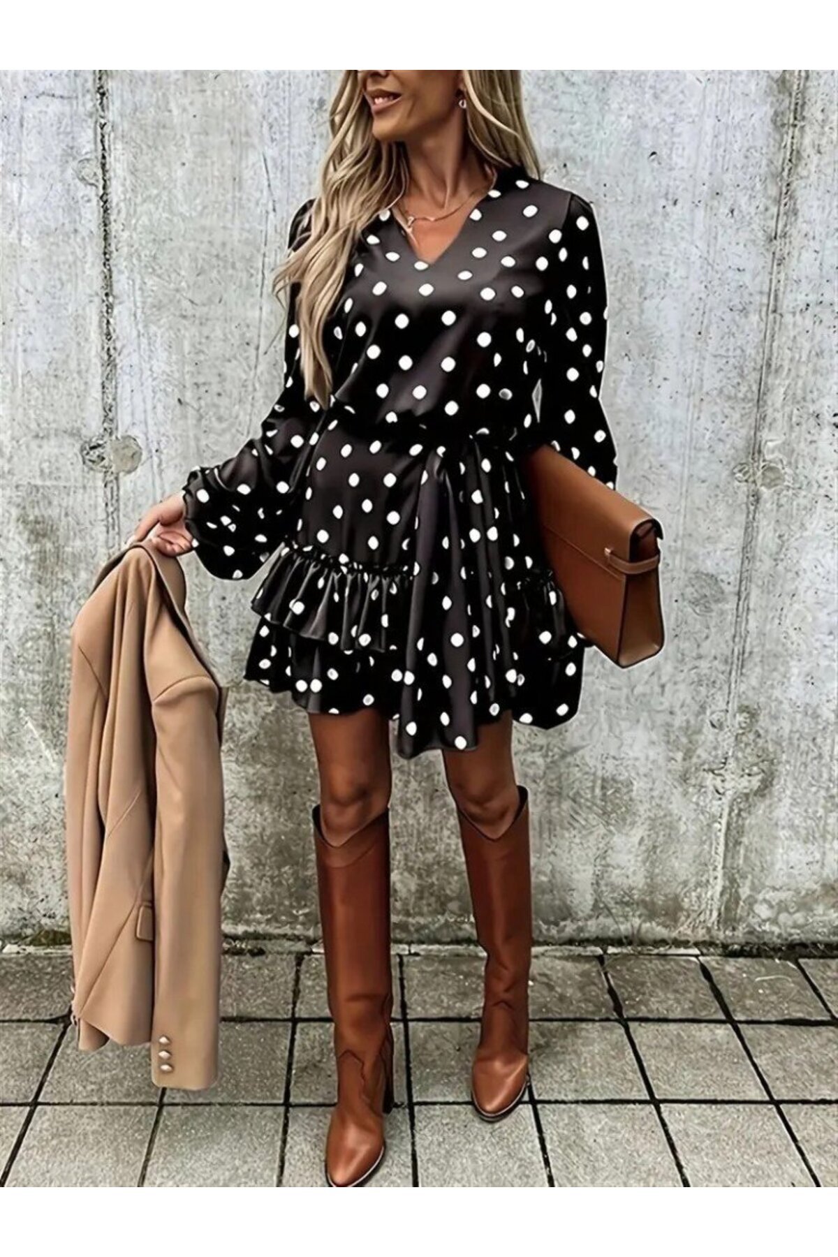 Kadın Uzun Kollu V Yakalı Belden Kuşaklı Puantiyeli Mini Modal Elbise Kadın Uzun Kollu V Yakalı Belden Kuşaklı Puantiyeli Mini Modal Elbise J-68ea10e88eb06 2XL-3XL
