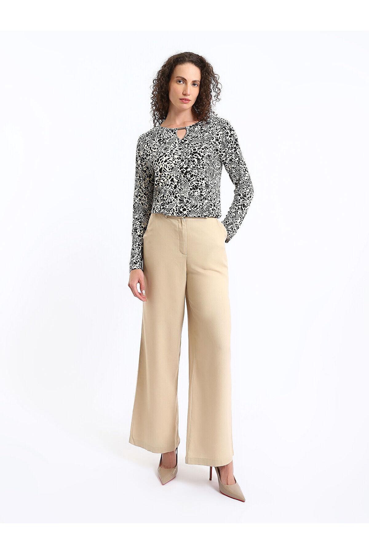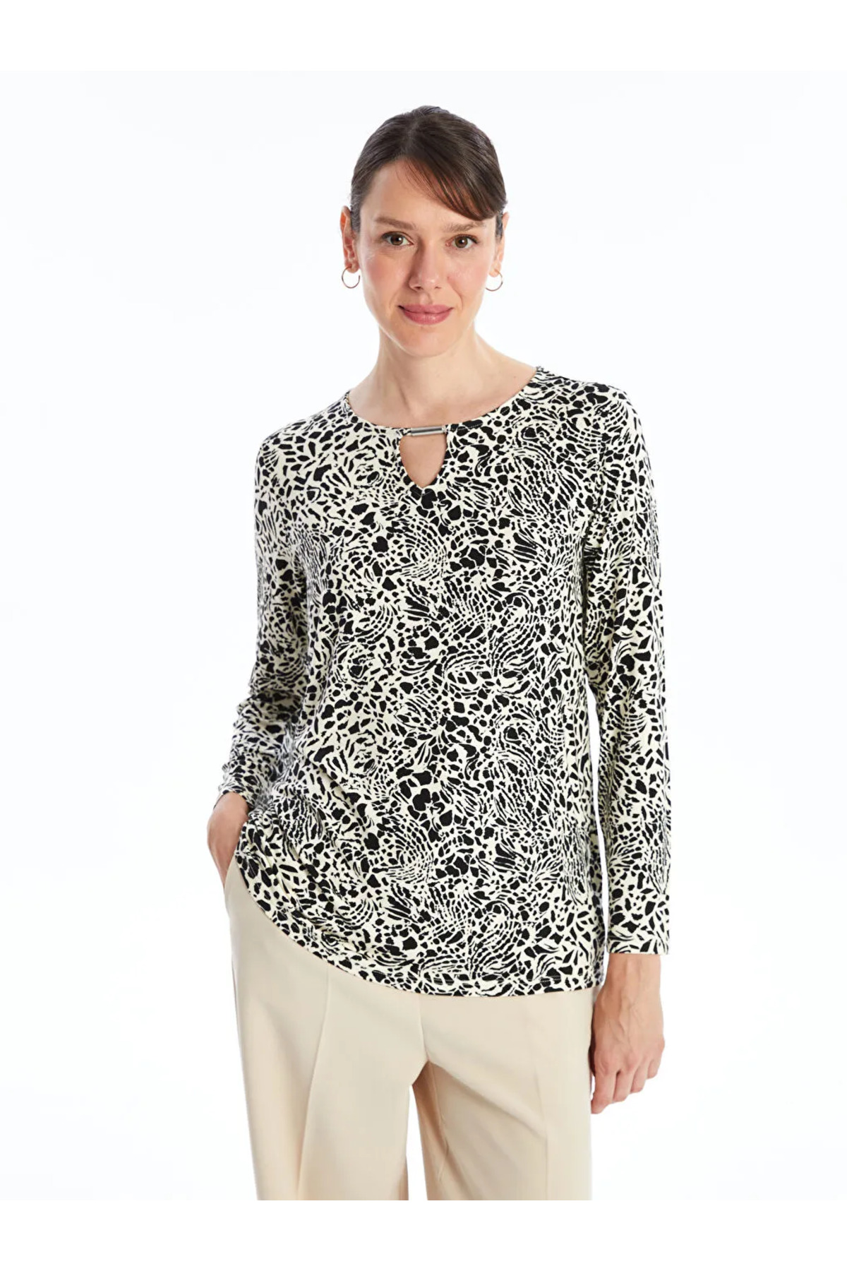 Siyah Bisiklet Yaka Desenli Uzun Kollu Kadın Bluz Siyah Bisiklet Yaka Desenli Uzun Kollu Kadın Bluz W45463Z8 L
