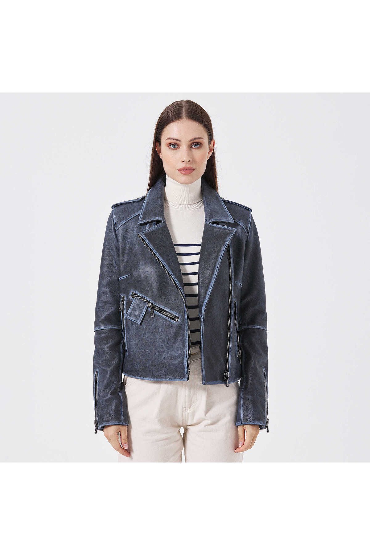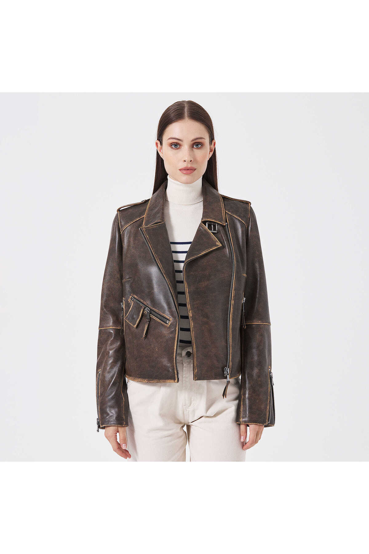 Kahve Hakiki Deri Kadın Hakiki Deri Biker Mont - K25GRJ320480-202 Kahve Hakiki Deri Kadın Hakiki Deri Biker Mont - K25GRJ320480-202 3XL