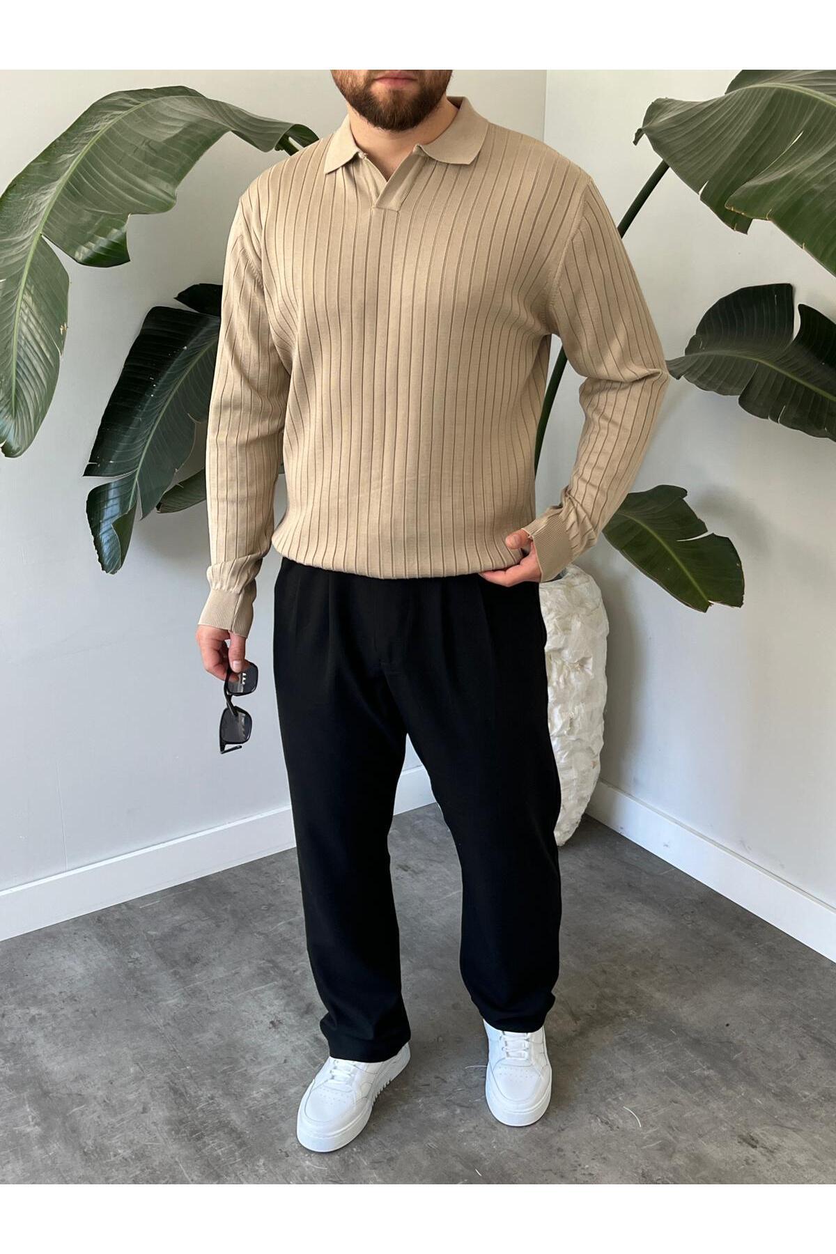 Erkek Oversize Polo Yaka Triko Kazak Erkek Oversize Polo Yaka Triko Kazak HWK2025TRİPO 2XL