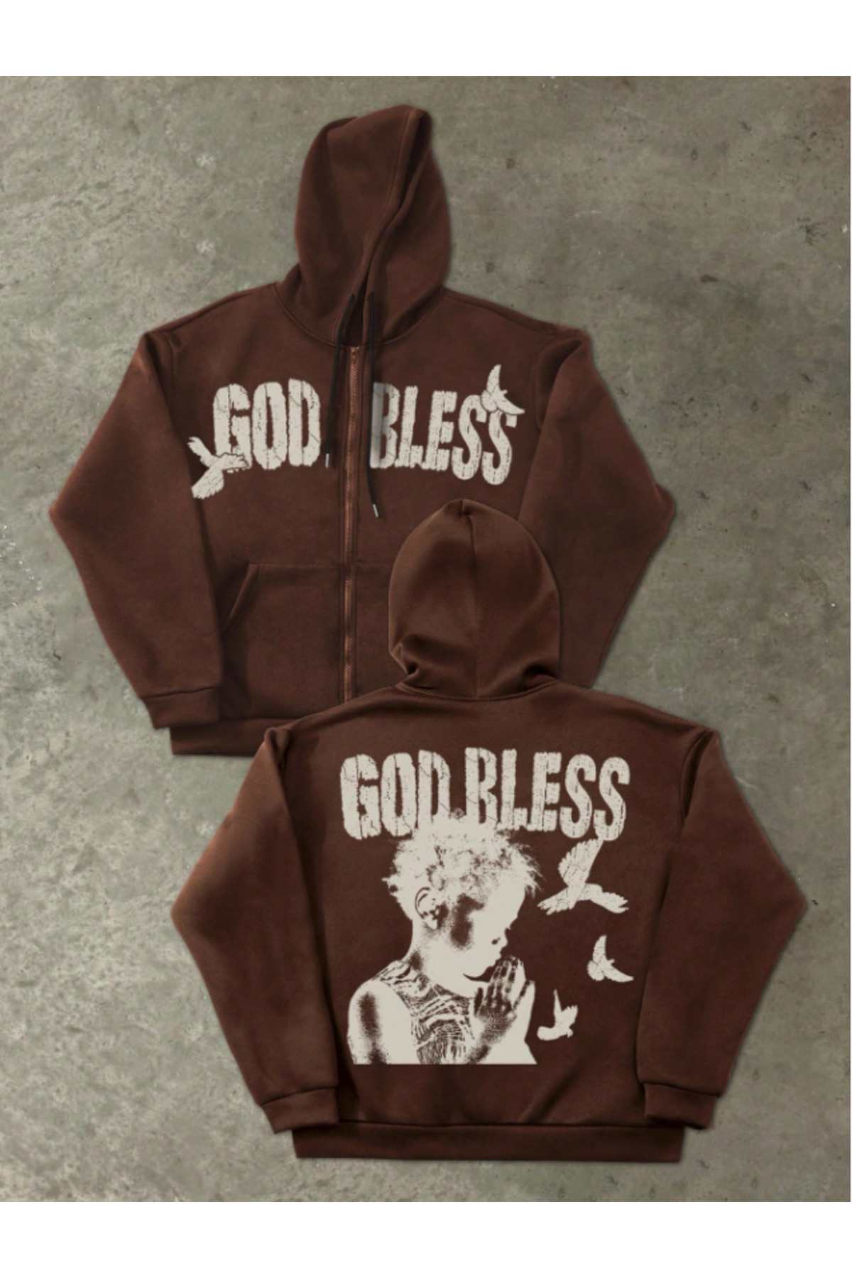 Ünisex God Bless Baskılı Kapüşonlu Fermuarlı Üç İplik Pamuklu Kışlık Sweatshirt Ünisex God Bless Baskılı Kapüşonlu Fermuarlı Üç İplik Pamuklu Kışlık Sweatshirt GBLS0025/32 XL