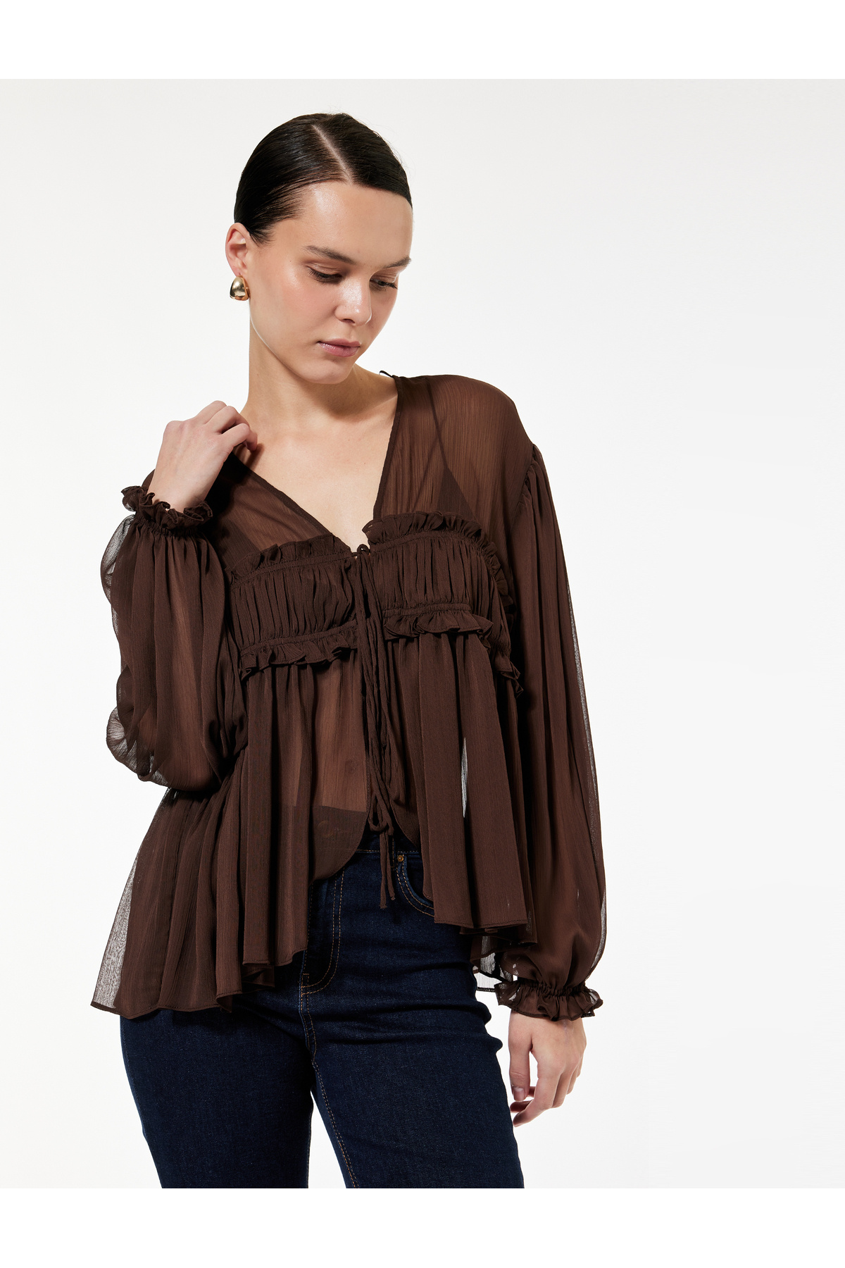 Slim Fit Gipeli Uzun Balon Kollu Dik Yaka Crop Dantelli Bluz Slim Fit Gipeli Uzun Balon Kollu Dik Yaka Crop Dantelli Bluz 6WAK80117EK XL