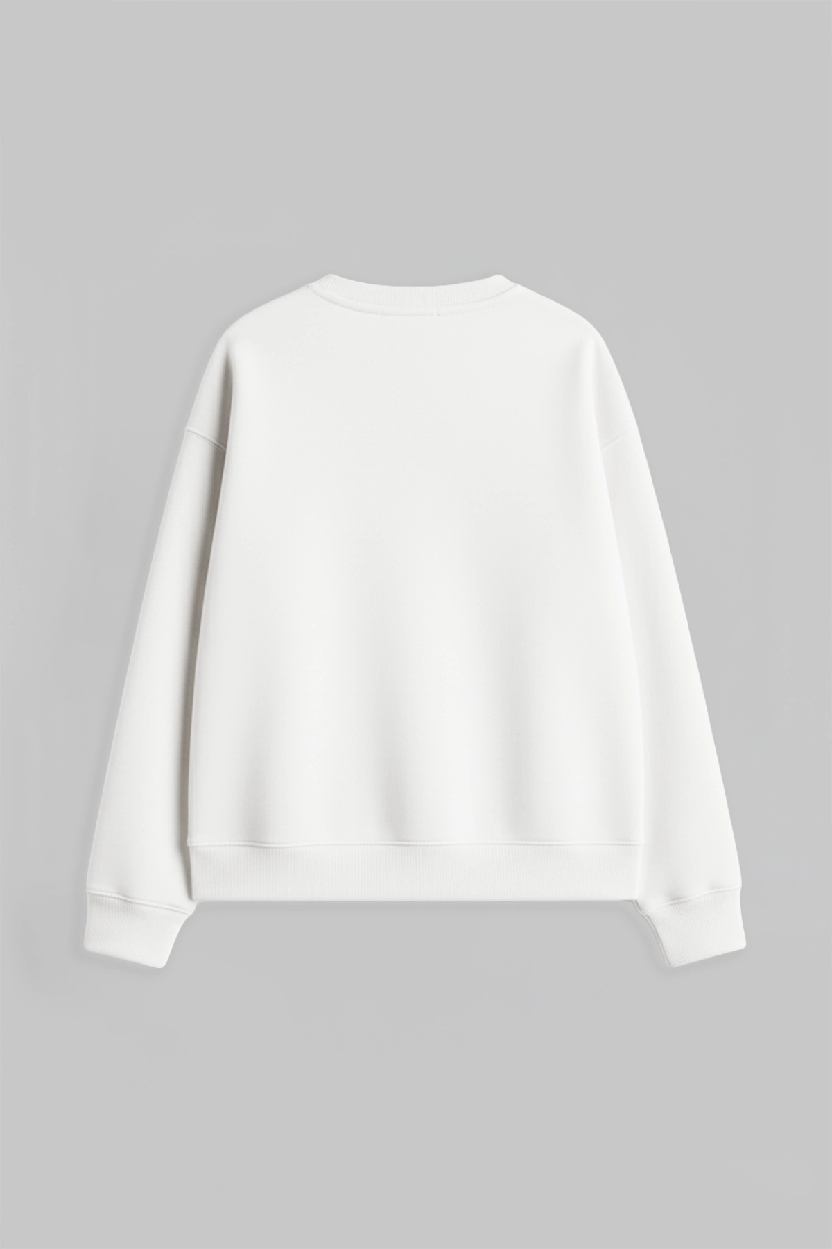 Cute Fiyonk Baskılı Kapüşonsuz Relaxed Fit Kadın Beyaz Sweatshirt Cute Fiyonk Baskılı Kapüşonsuz Relaxed Fit Kadın Beyaz Sweatshirt BM816E2463 XL