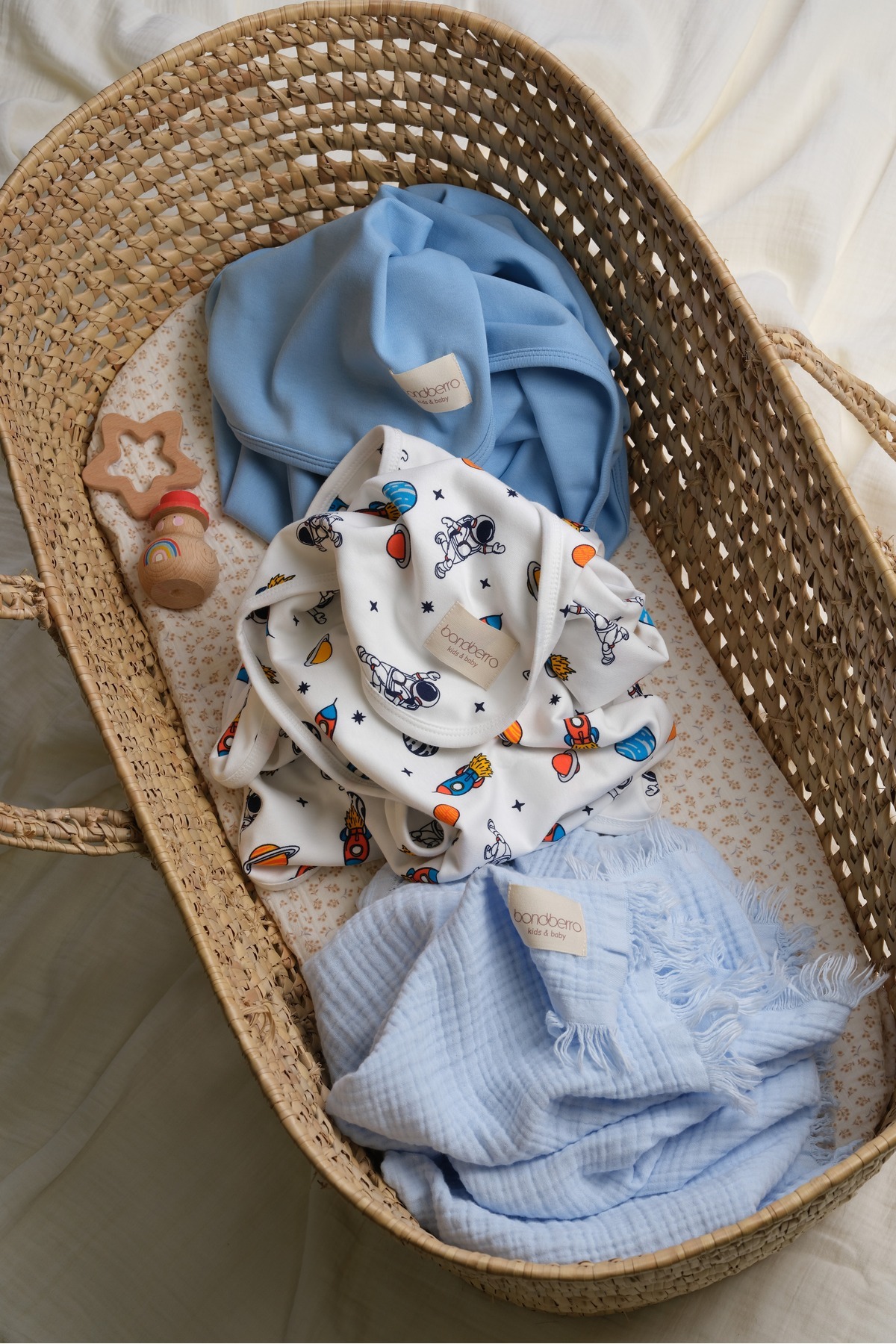 Bebek ve Yeni Doğan Hediye Seti 6 Parça ( Body / Bornoz / Battaniye / Kundak / 2 Adet Müslin Örtü )