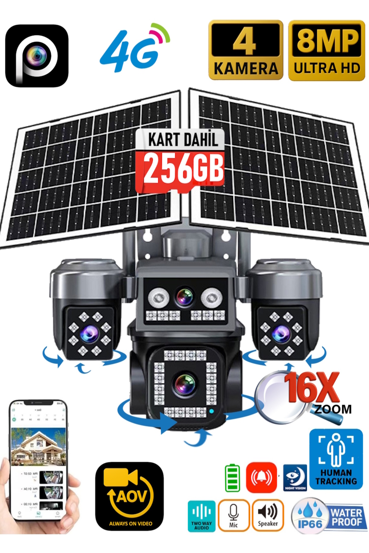Z7PLUS 8MP 4 Kameralı 4G Çift Solar Panel 16X Zoom HiEasy AOV Gece Görüş Çift Yönlü Ses Z7PLUS 8MP 4 Kameralı 4G Çift Solar Panel 16X Zoom HiEasy AOV Gece Görüş Çift Yönlü Ses ZR-Z7PLUS تک سایز