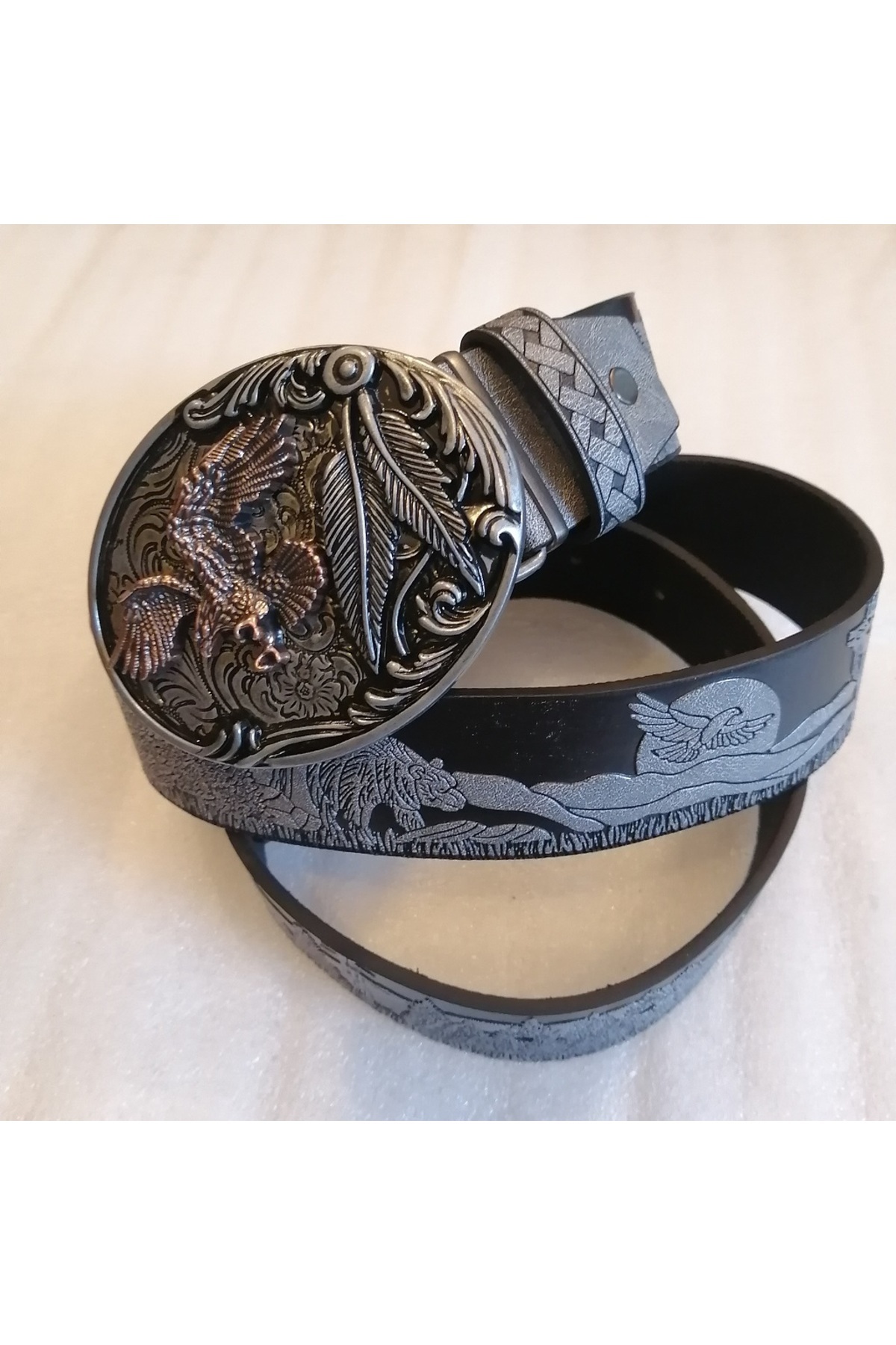Unisex otantik suni deri siyah gri baskılı desenli gümüş bakır kartal kovboy tokalı kemer Tayland Unisex otantik suni deri siyah gri baskılı desenli gümüş bakır kartal kovboy tokalı kemer Tayland 5576619 120 CM