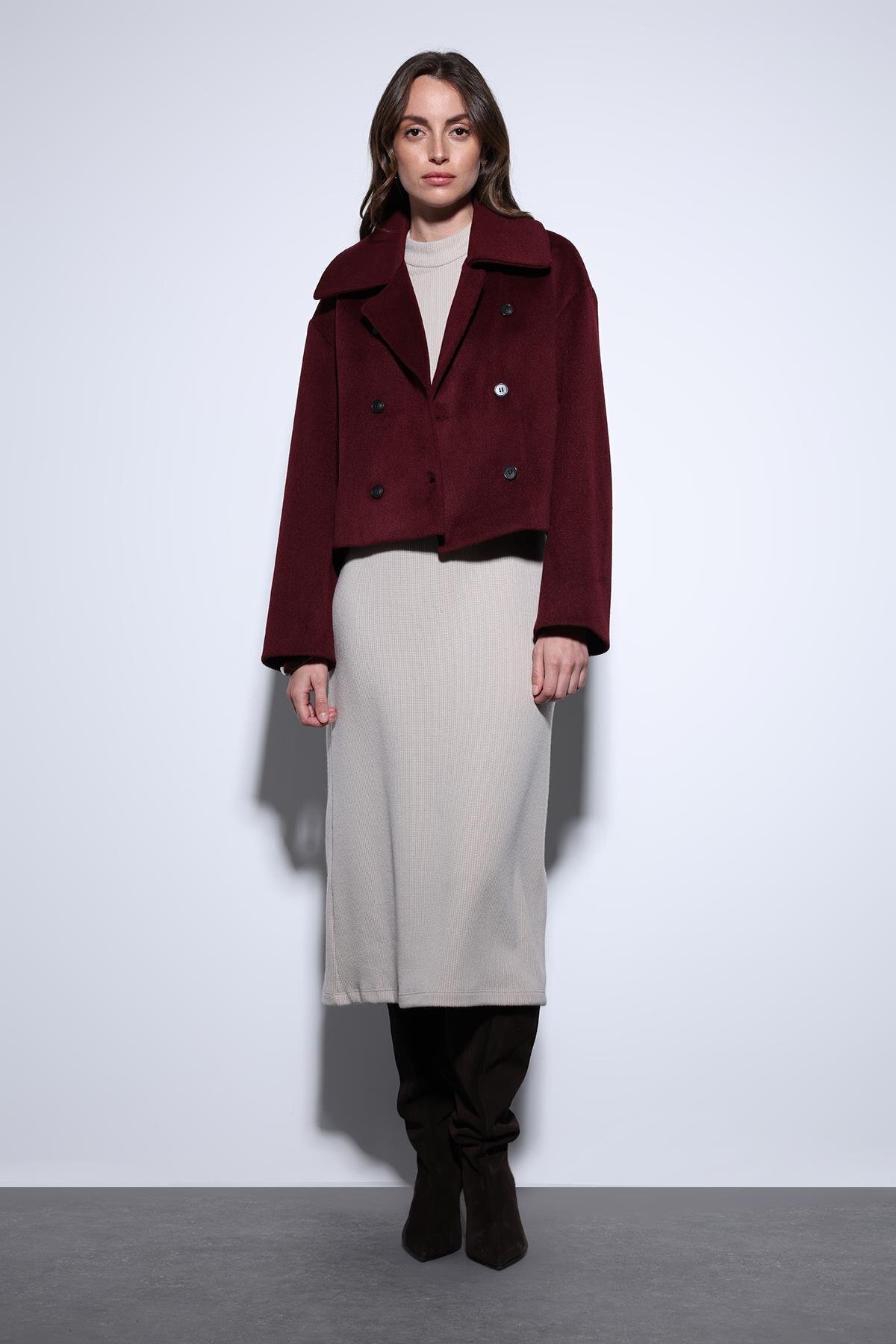 Bordo Bel Lastikli Crop Kadın Mont Bordo Bel Lastikli Crop Kadın Mont BA25Y812 L
