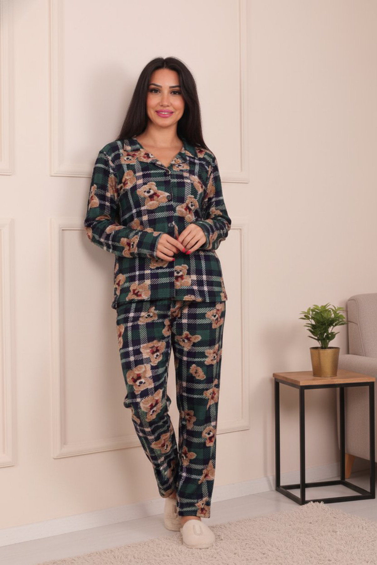 Kadın Ayıcık Desenli Önü Düğmeli Süet Pijama Takımı Kadın Ayıcık Desenli Önü Düğmeli Süet Pijama Takımı N.LIFE-10676 2XL