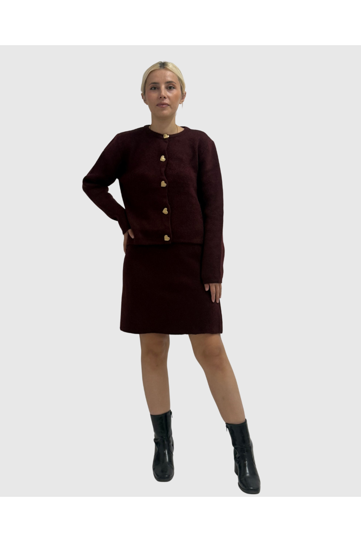 Kadın Lüx Düğme Detaylı Ceket Ve Etek Triko Takım Kadın Lüx Düğme Detaylı Ceket Ve Etek Triko Takım 12247 Standart