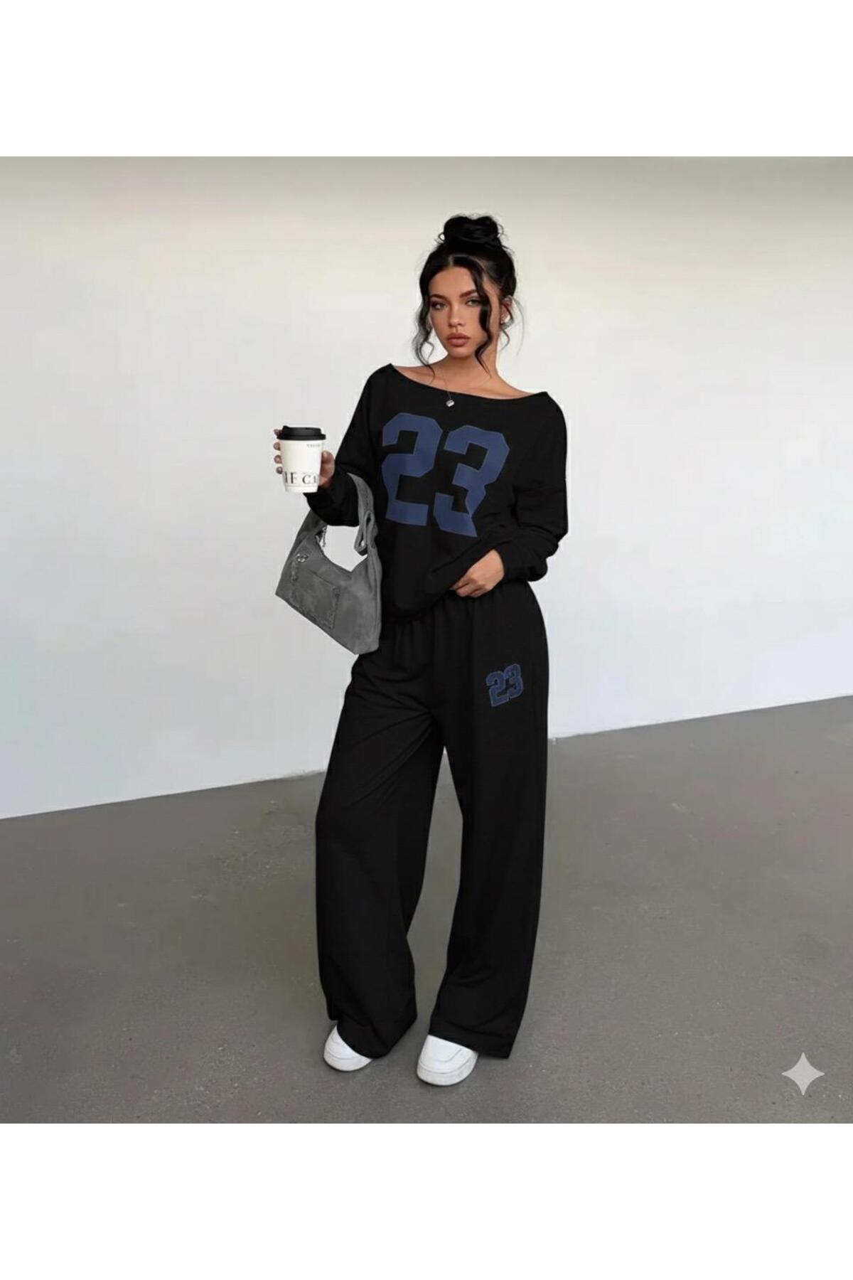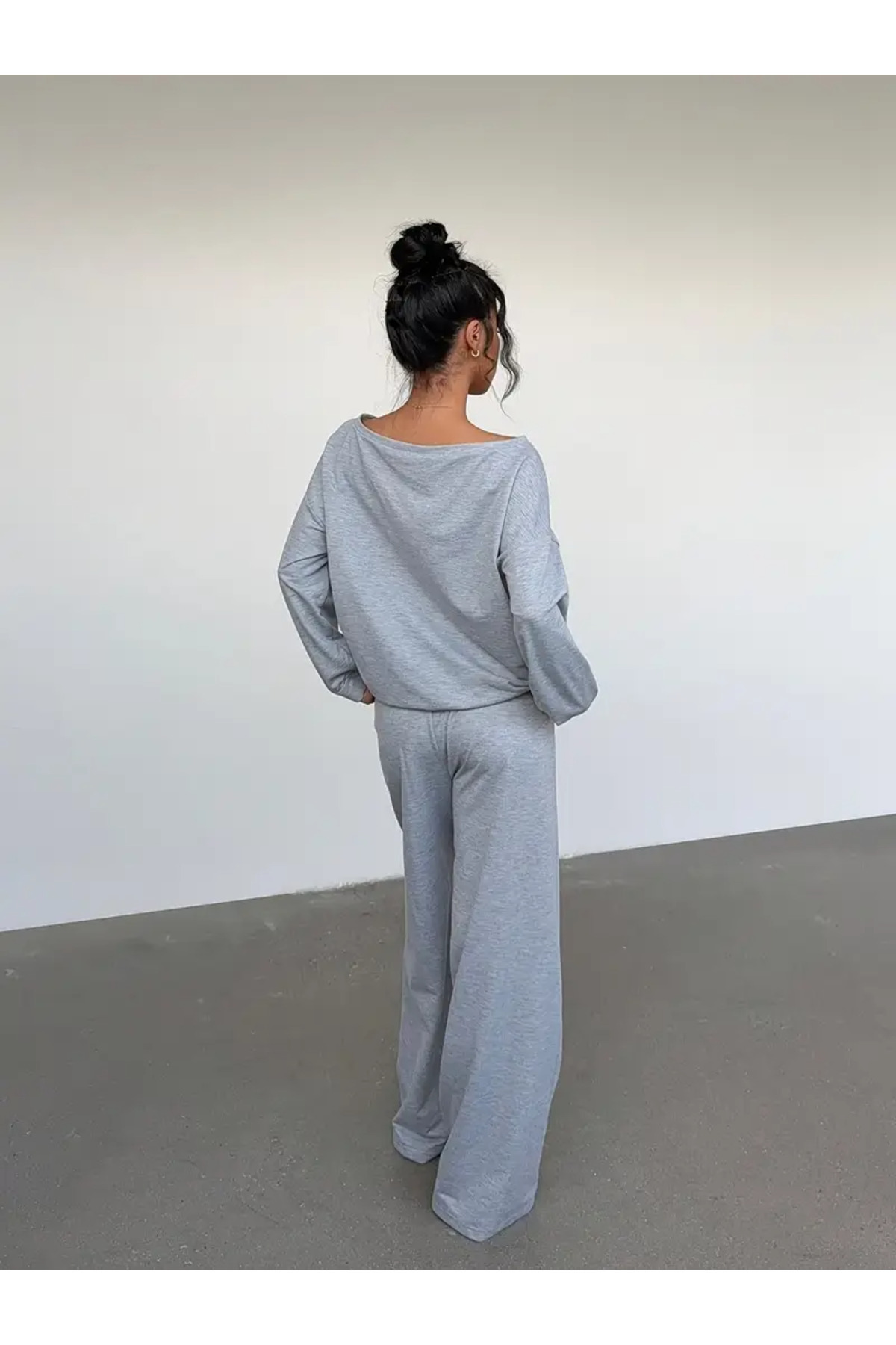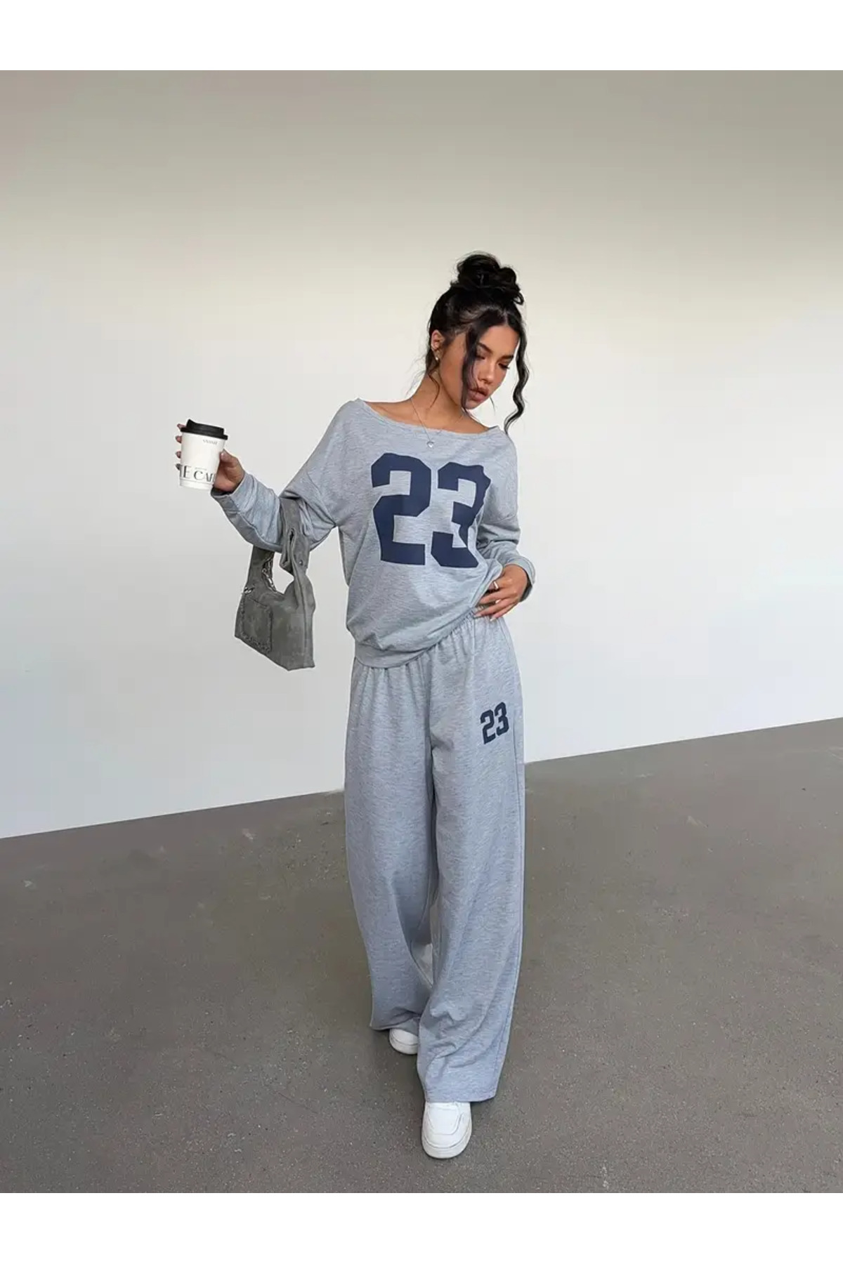 Kadın Gri Kayık Yaka Ribanalı 23 Baskılı Sweatshirt- Gri Bol Kesim Rahat Eşofman Takım Kadın Gri Kayık Yaka Ribanalı 23 Baskılı Sweatshirt- Gri Bol Kesim Rahat Eşofman Takım baggypembe XL