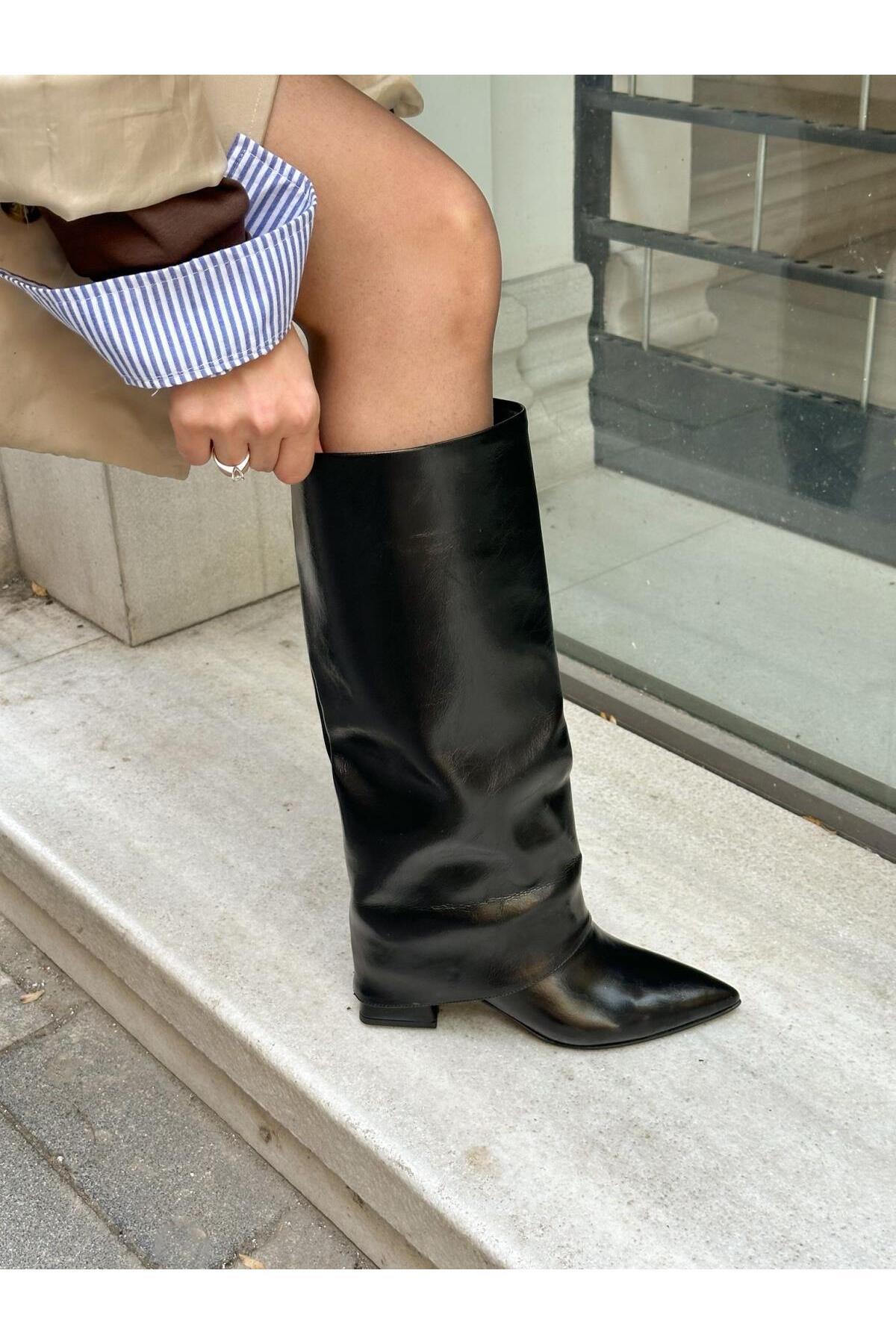 Siyah Kırışık Deri (Favy) Topuklu Kadın Çizme Siyah Kırışık Deri (Favy) Topuklu Kadın Çizme ERV2797 40