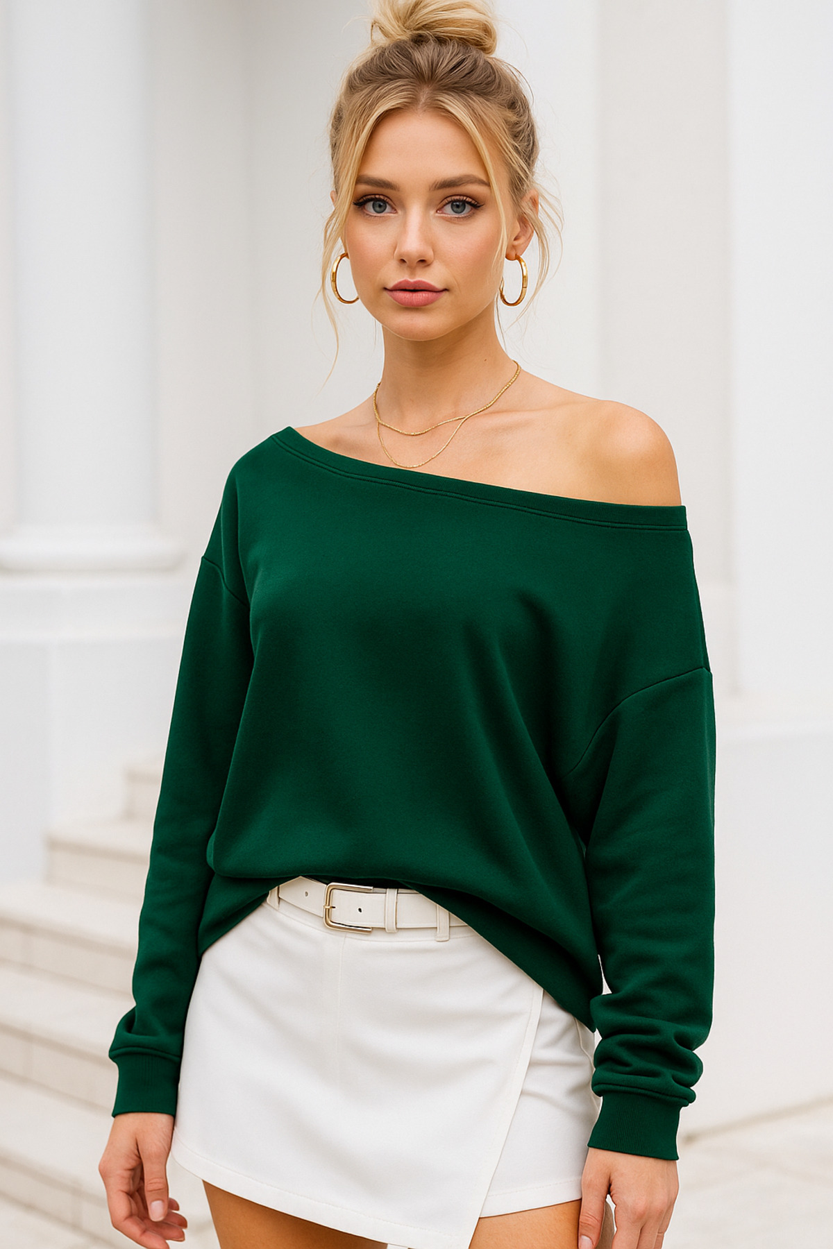 Kadın Koyu Yeşil Düşük Omuz Modal Bluz Kadın Koyu Yeşil Düşük Omuz Modal Bluz RWBLZ-3 L