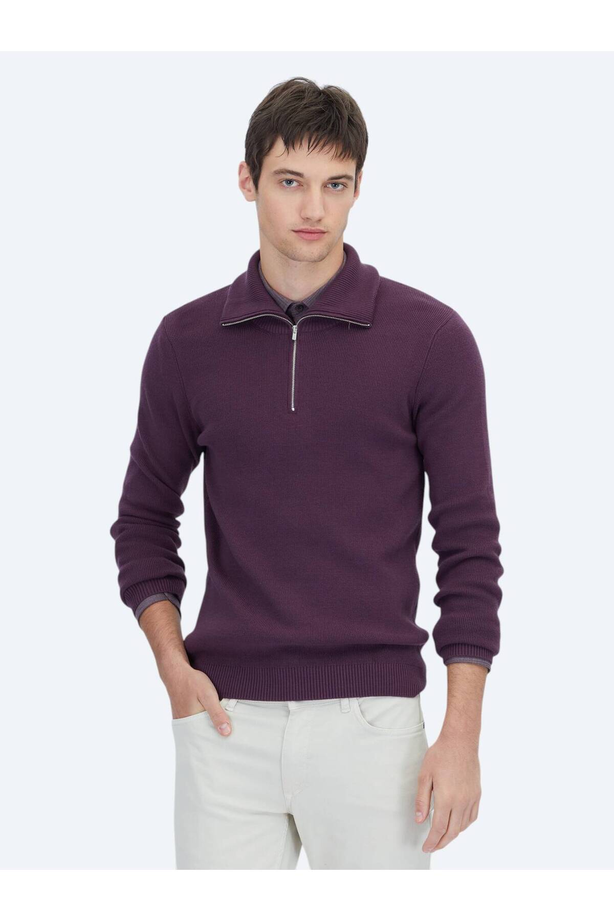 Haki Polo Yaka Jakarlı Yün Karışımlı Triko Kazak Haki Polo Yaka Jakarlı Yün Karışımlı Triko Kazak 51285 3XL