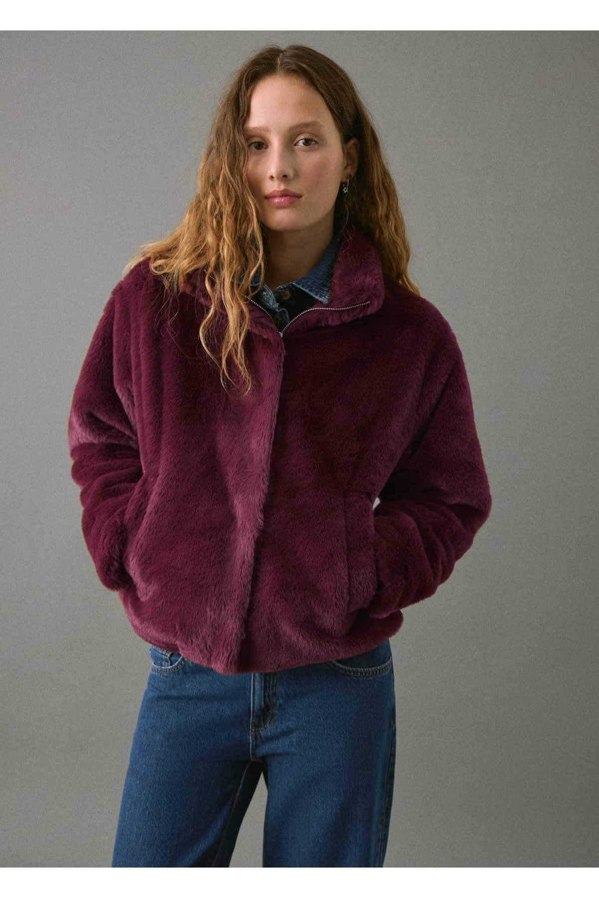 Bordo Suni Kürk Kadın Ceket Bordo Suni Kürk Kadın Ceket BA25Y433 L