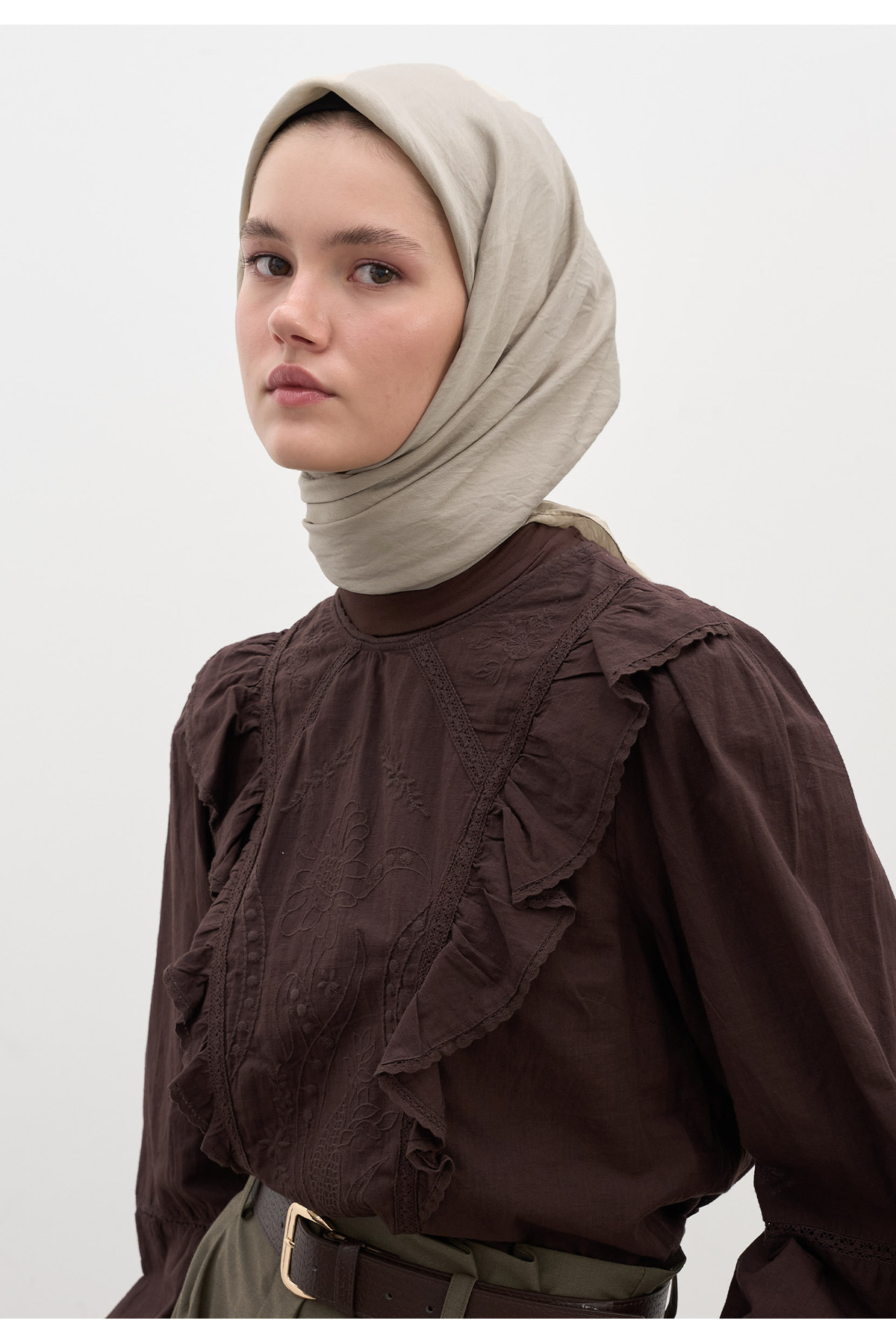 PAMUK VİSKON EŞARP VİZON PAMUK VİSKON EŞARP VİZON FS25DZE0000001 تک سایز