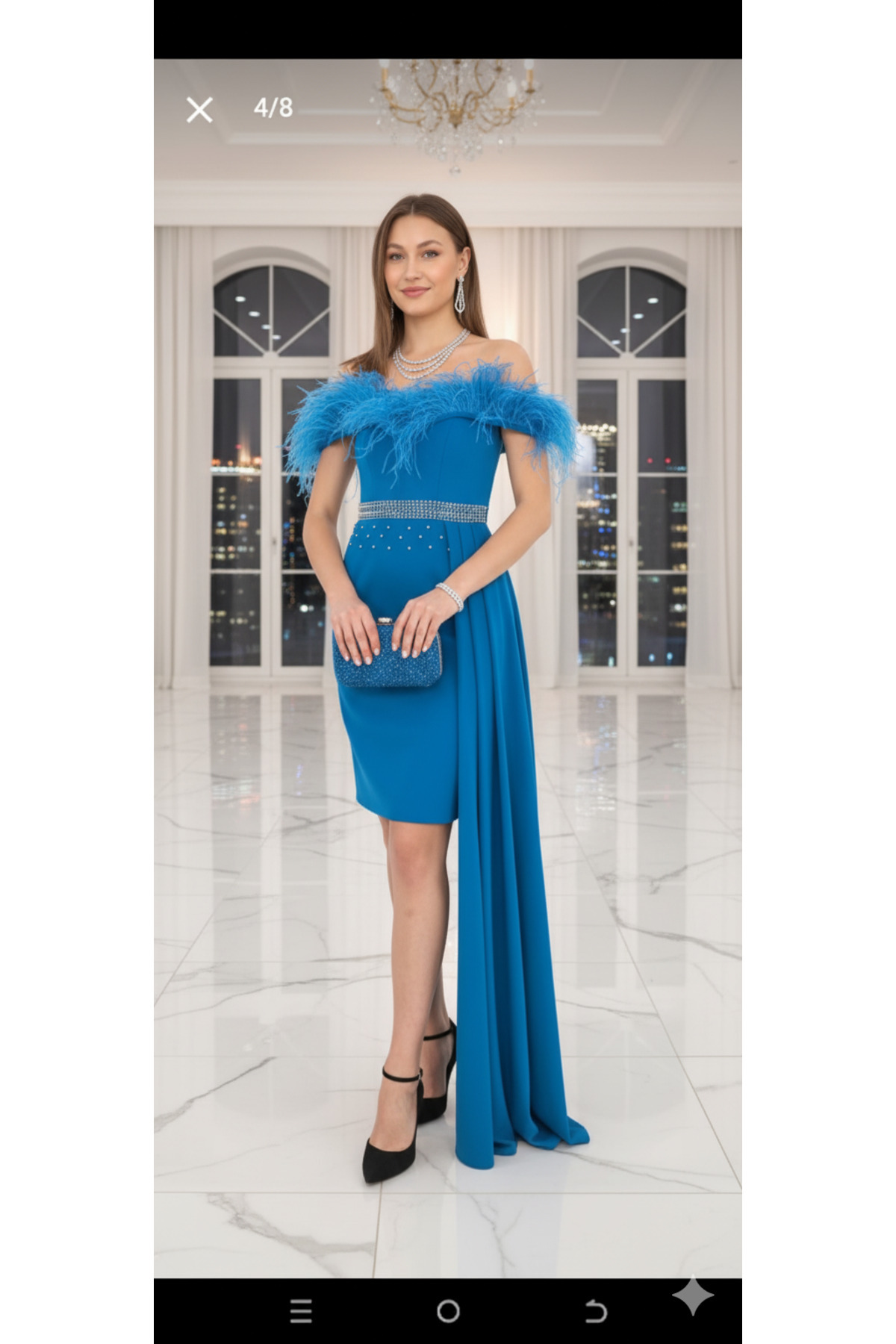 Tüylü Omuz Dekolteli Taş Kemerli Asimetrik Etek Abiye Elbise Mezuniyet Kıyafeti Tüylü Omuz Dekolteli Taş Kemerli Asimetrik Etek Abiye Elbise Mezuniyet Kıyafeti ROB6838 42