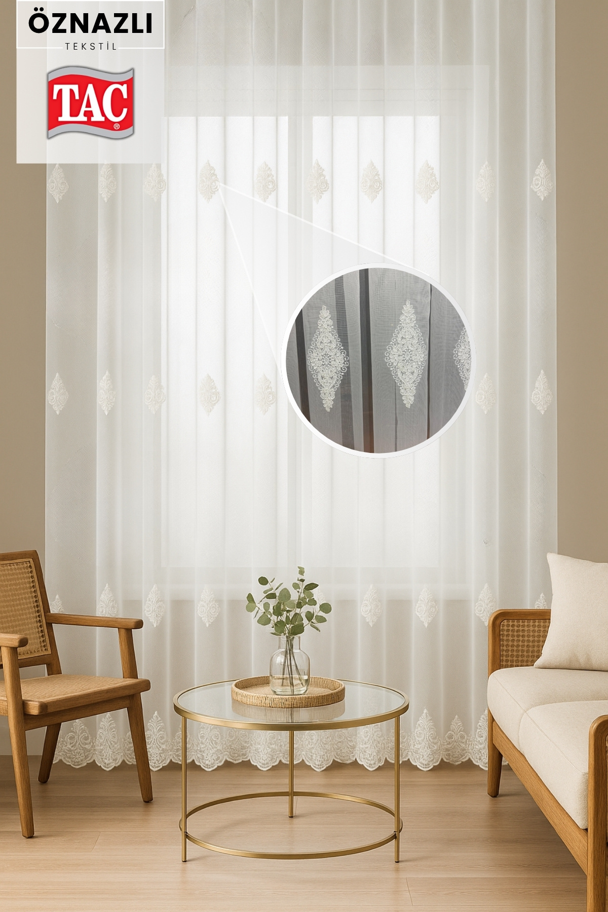 Lüks Klasik Tül Perde – 3 Sıra Brode, Etek Brodeli, Sık Pileli Zarif Tasarım Lüks Klasik Tül Perde – 3 Sıra Brode, Etek Brodeli, Sık Pileli Zarif Tasarım TAÇ BRODE TÜL PERDE 320 x 255