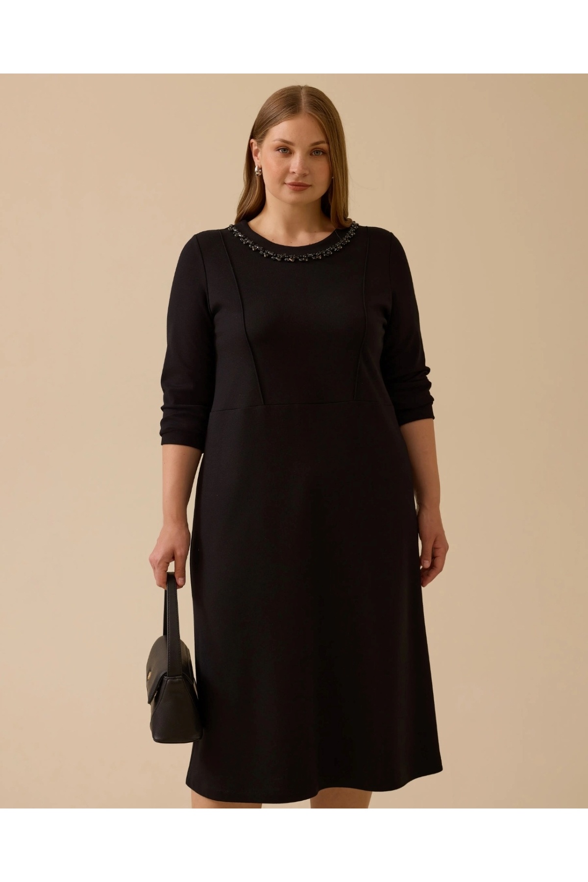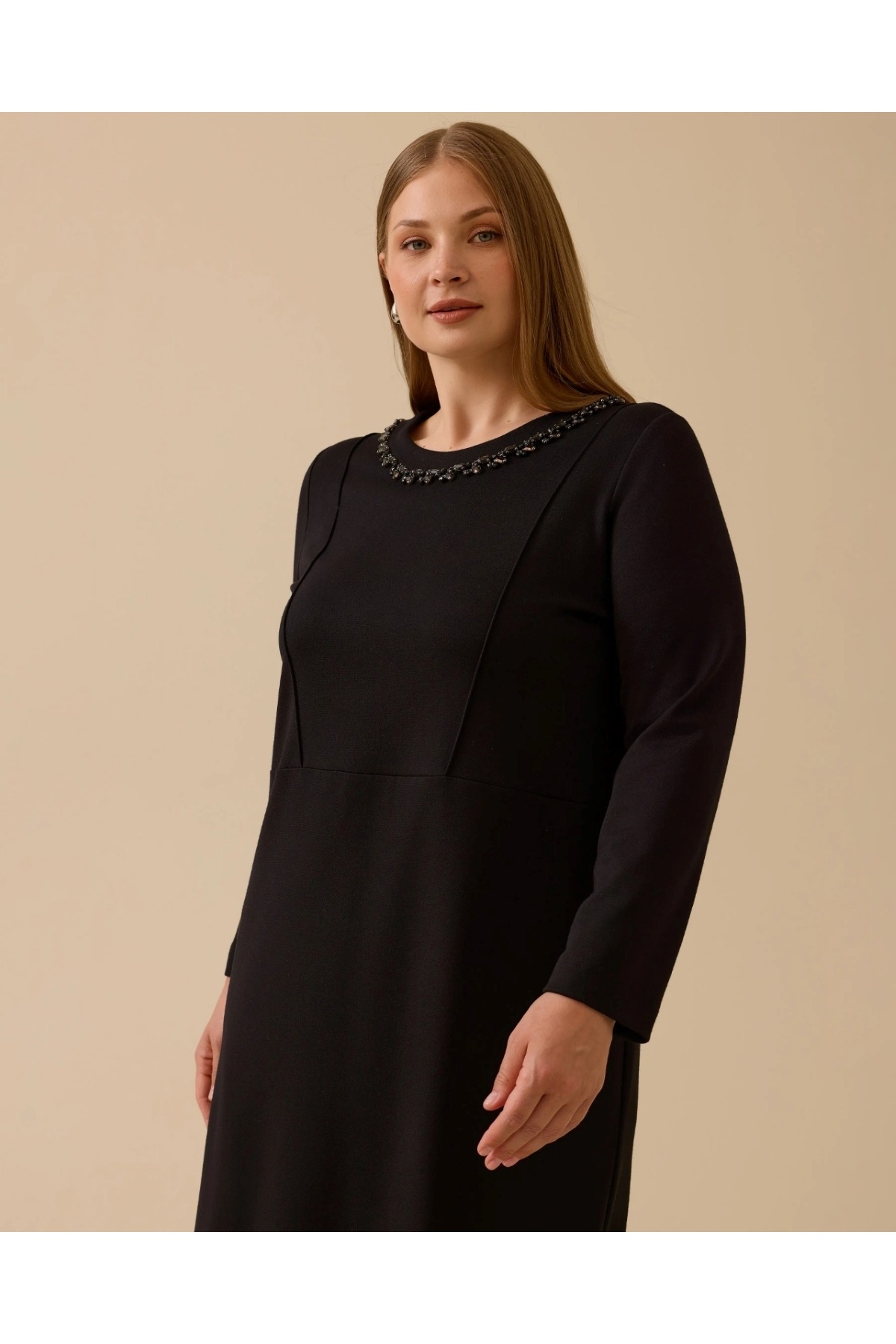 YENİ KADIN büyük beden taşlı yaka detaylı elbise 10002521314002 YENİ KADIN büyük beden taşlı yaka detaylı elbise 10002521314002 P114008S6031 50