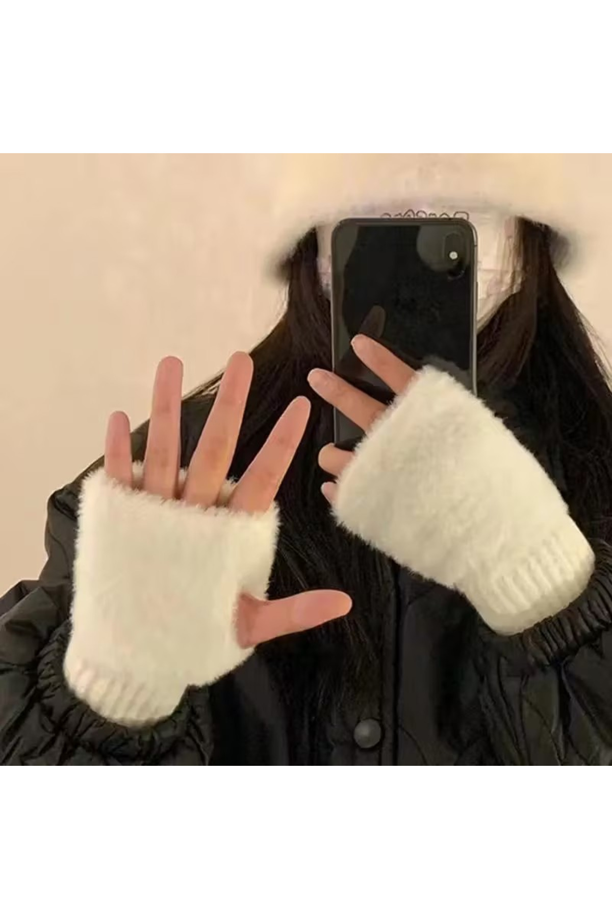 Kışlık Beyaz Kürklü Parmaksız Eldiven Tarz Kadın ve Erkekler için Örgü Eldiven Kışlık Beyaz Kürklü Parmaksız Eldiven Tarz Kadın ve Erkekler için Örgü Eldiven kürklü تک سایز