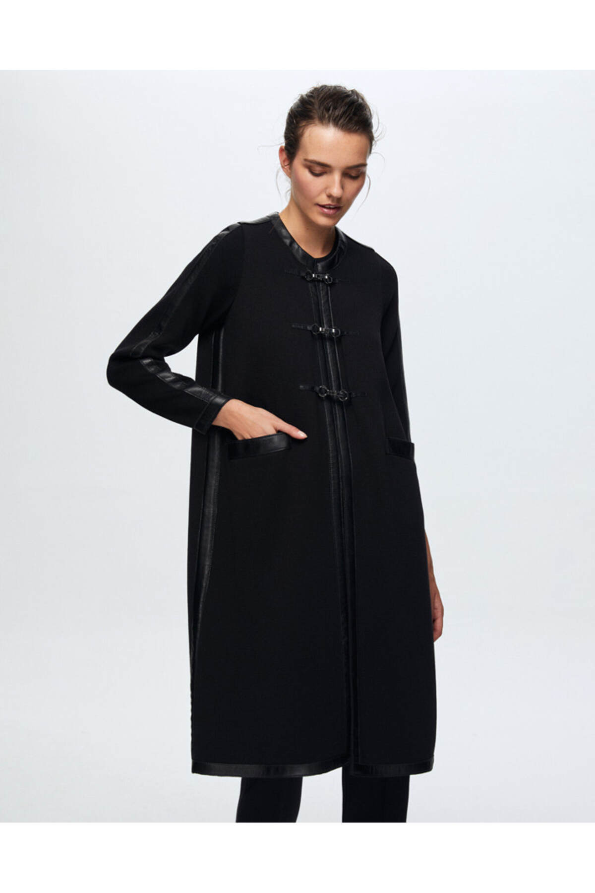 T24K-8011 Deri Detaylı Agraf Kapamalı Triko Kap BLACK T24K-8011 Deri Detaylı Agraf Kapamalı Triko Kap BLACK 8414 42
