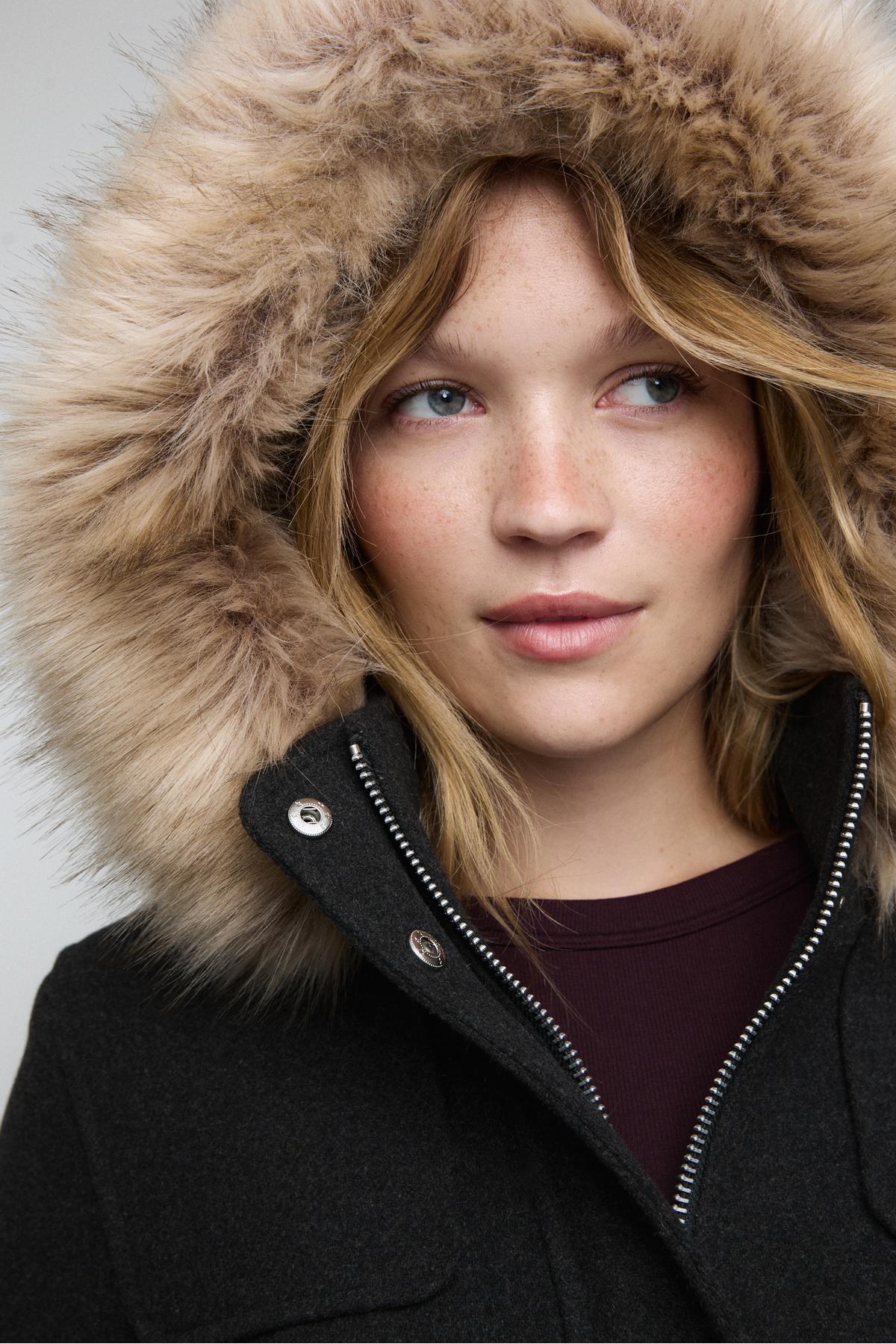 Kapüşonlu kürk detaylı mont Kapüşonlu kürk detaylı mont 05819869 XL
