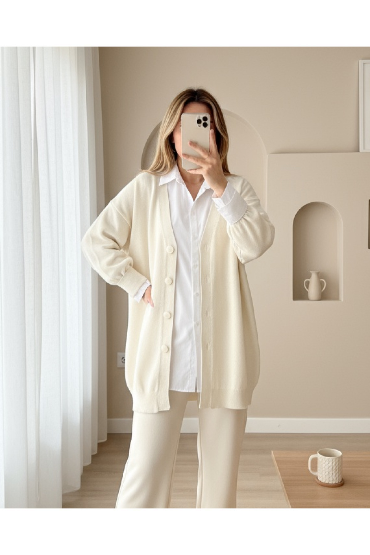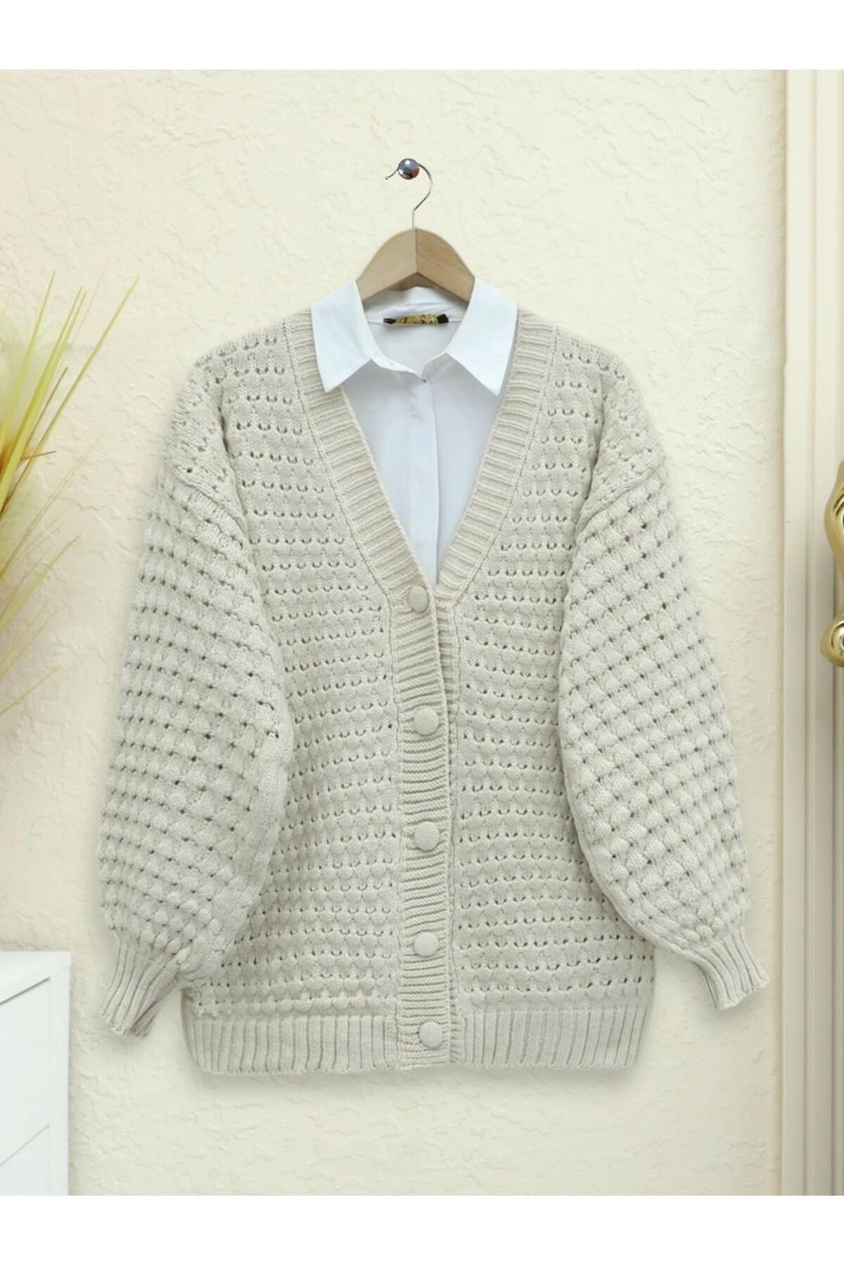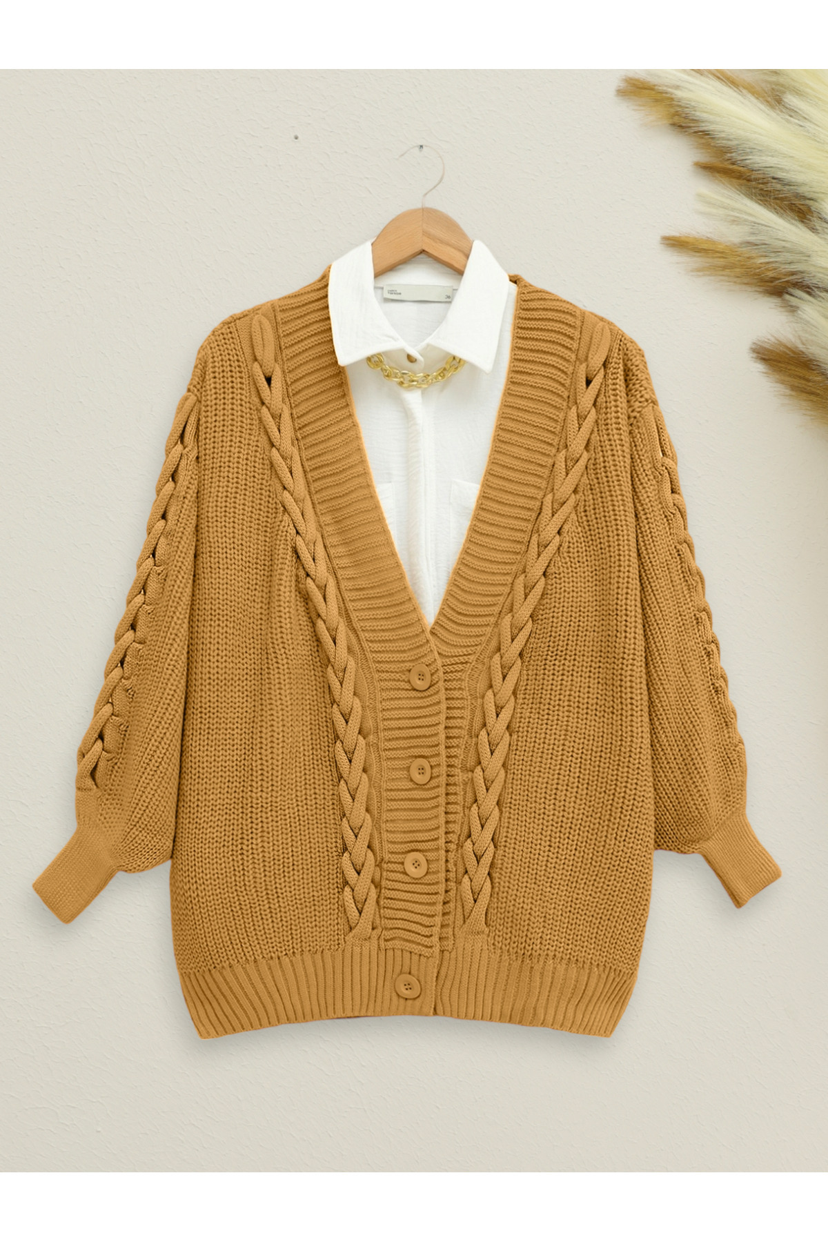 Örgü Zincir Detaylı Kışlık Hırka Örgü Zincir Detaylı Kışlık Hırka MMG00213 Standart