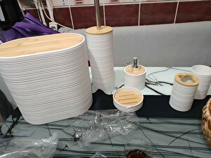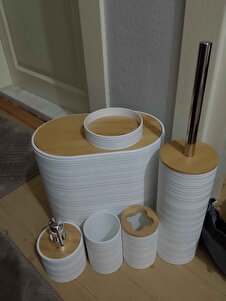 6 Parça Bambu Kapaklı Banyo Seti, Beyaz, Oval, Hacim: 8 litre 6 Parça Bambu Kapaklı Banyo Seti, Beyaz, Oval, Hacim: 8 litre MKR-304 تک سایز