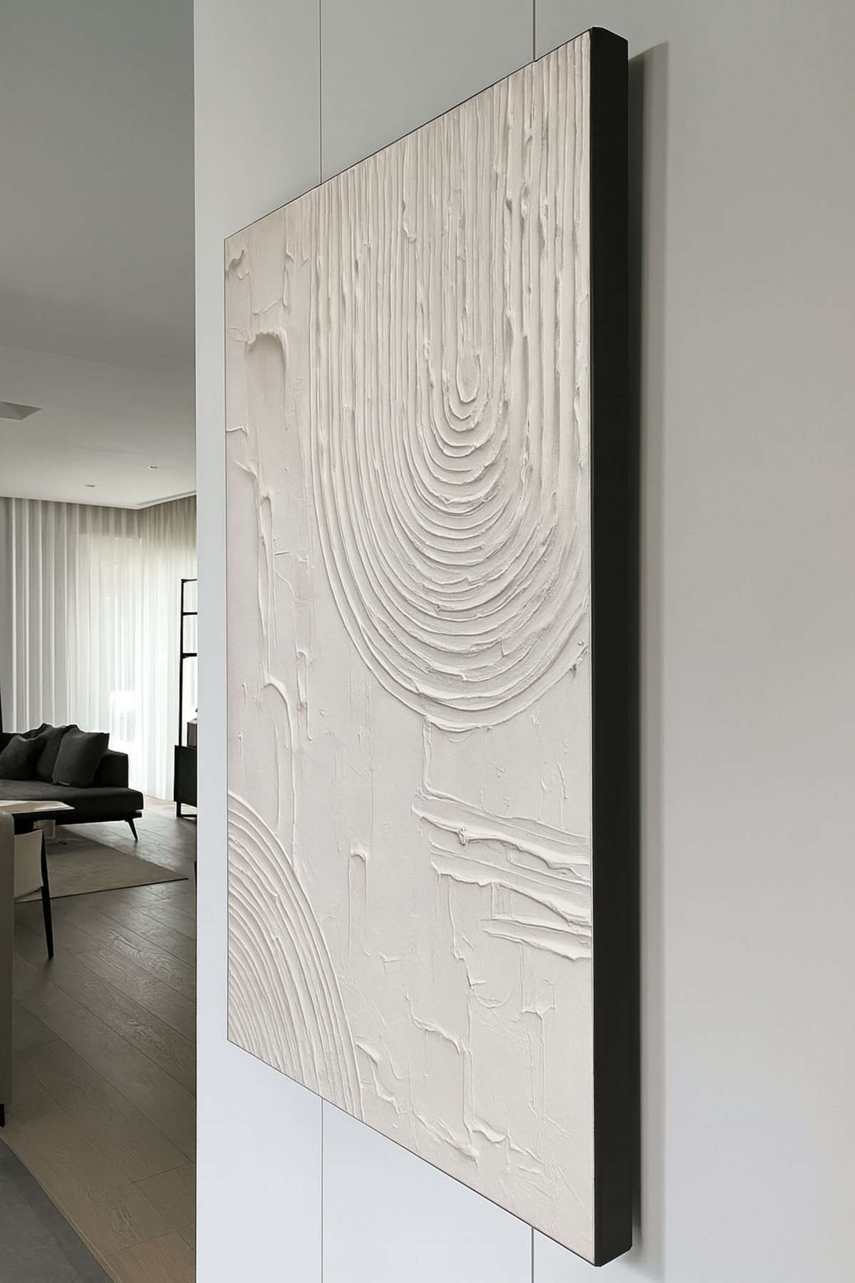 PinVibe El Yapımı Kabartmalı Minimal Duvar Tablosu – Beyaz Dokulu Modern Sanat Eseri(Çerçevesiz) PinVibe El Yapımı Kabartmalı Minimal Duvar Tablosu – Beyaz Dokulu Modern Sanat Eseri(Çerçevesiz) AMRS-001 100 x 70