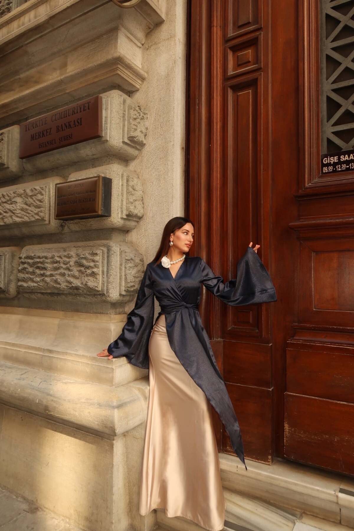 İçten Bağlamalı Yarasa Kol Elbise İçten Bağlamalı Yarasa Kol Elbise yarasa L/XL