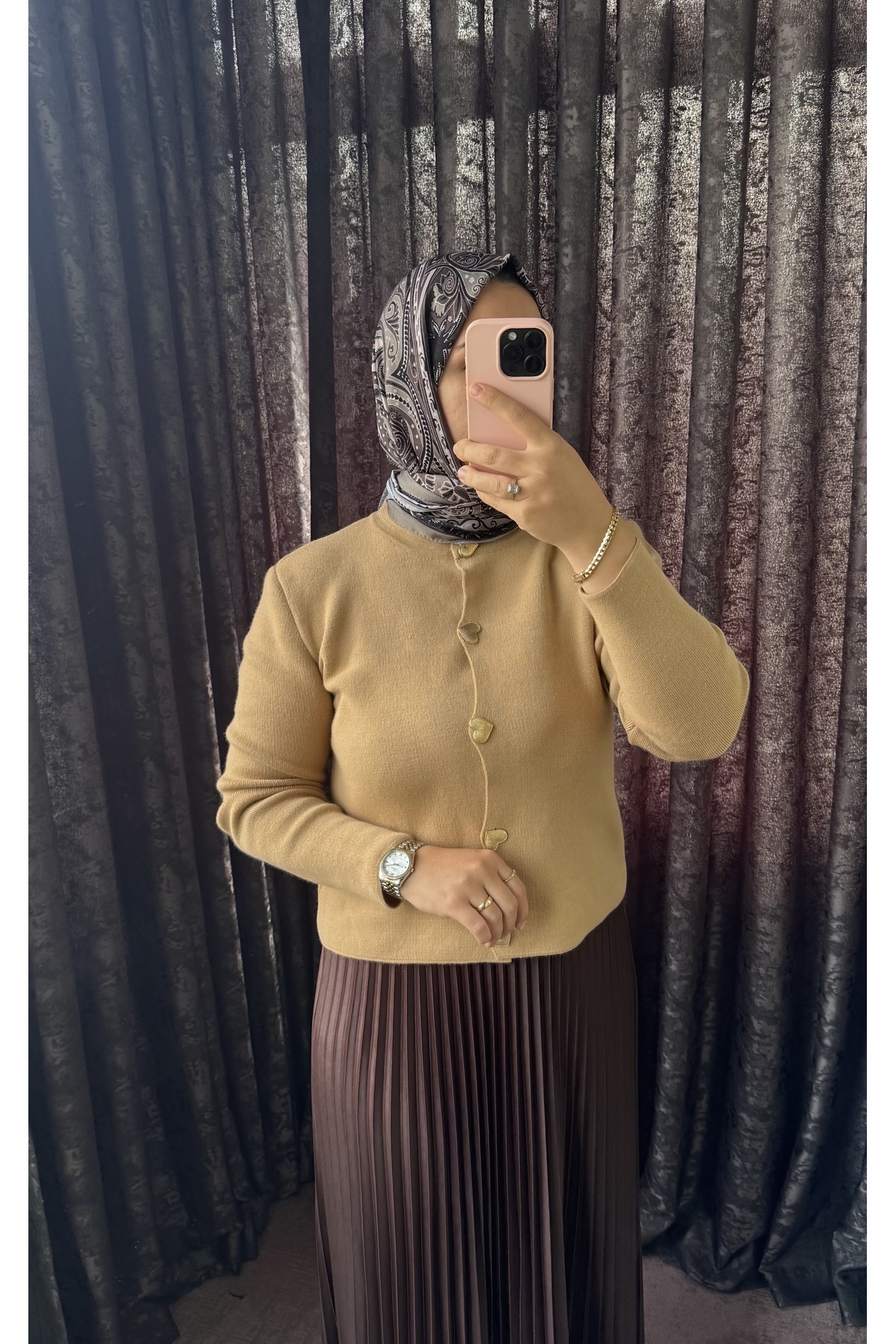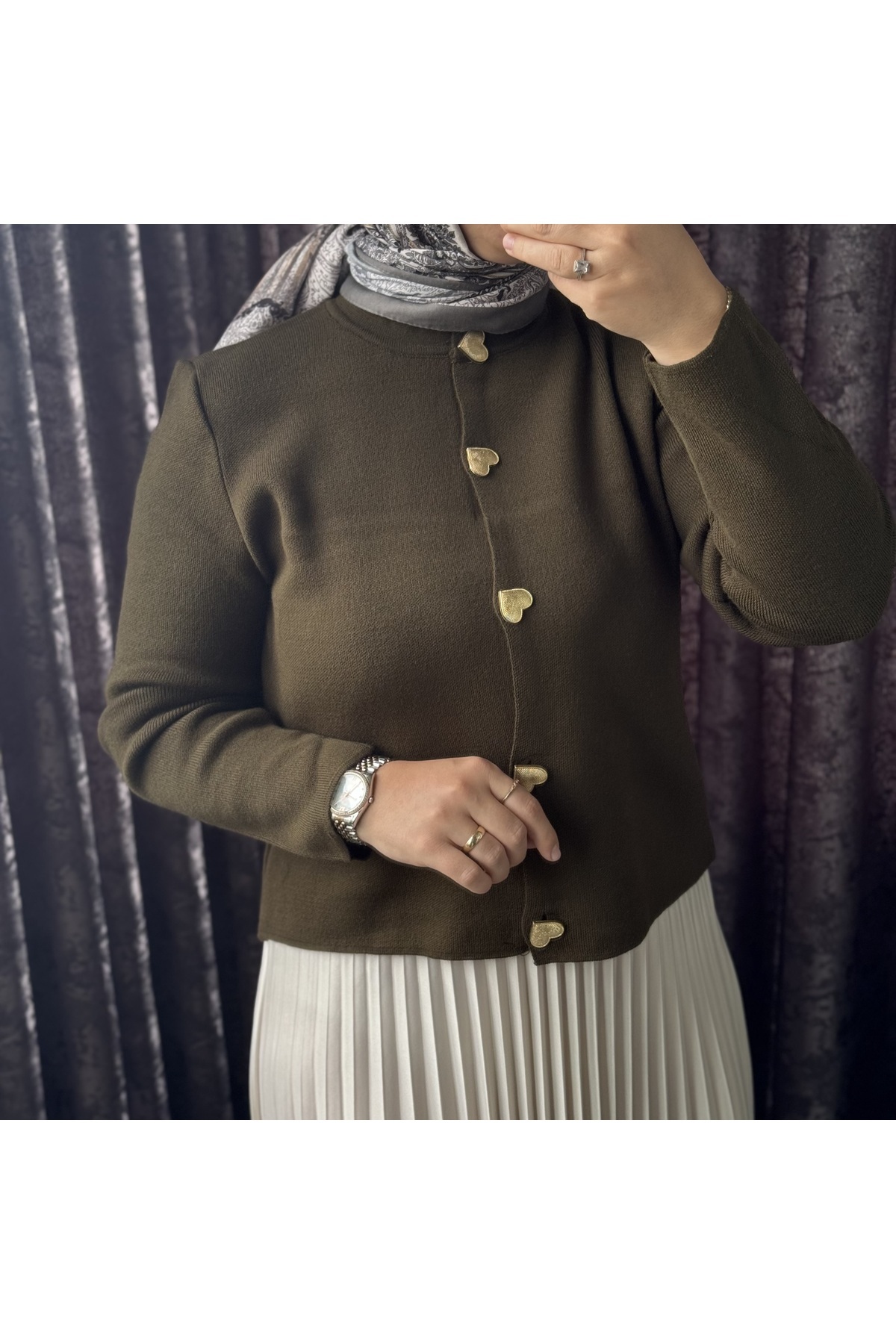 Kalp düğme detaylı triko hırka Kalp düğme detaylı triko hırka kalpdüğme01 Standart