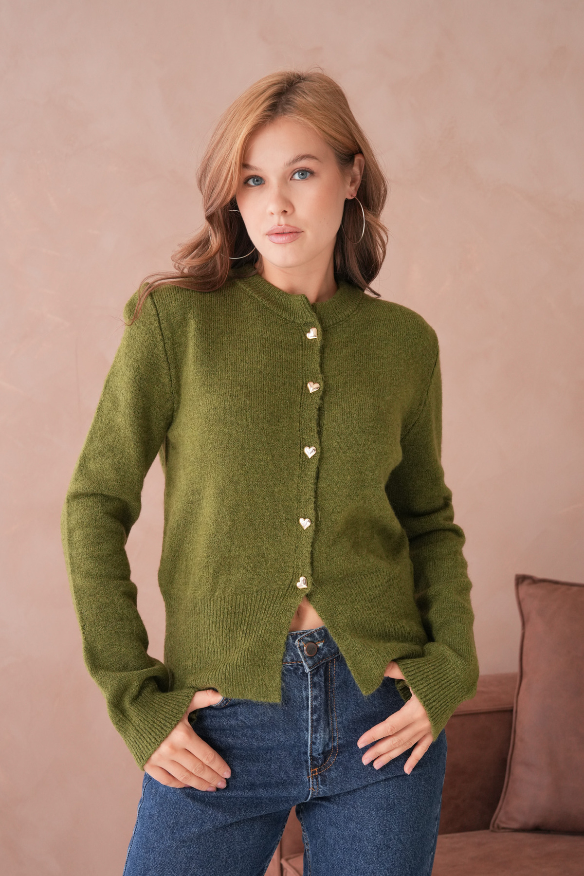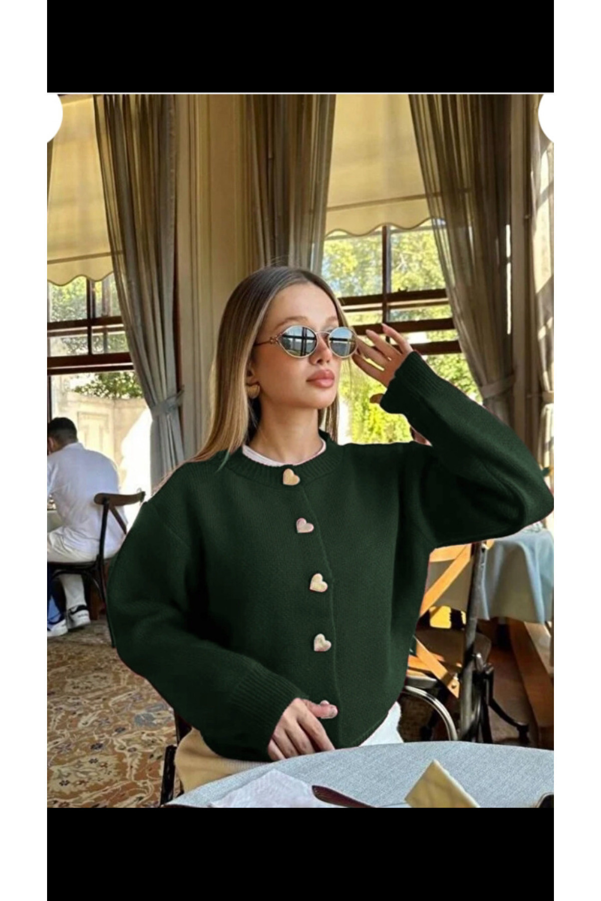 Kalp düğme detaylı triko hırka Kalp düğme detaylı triko hırka kalpdüğme01 Standart