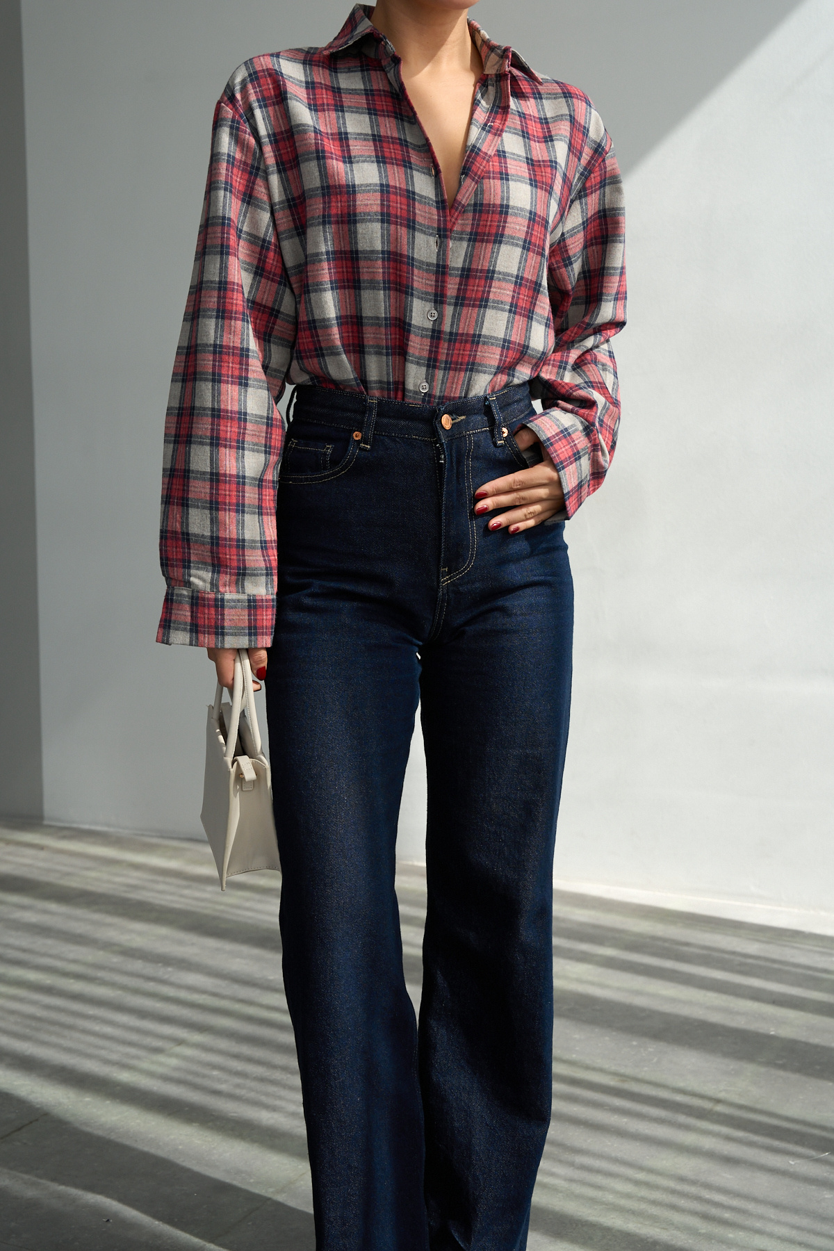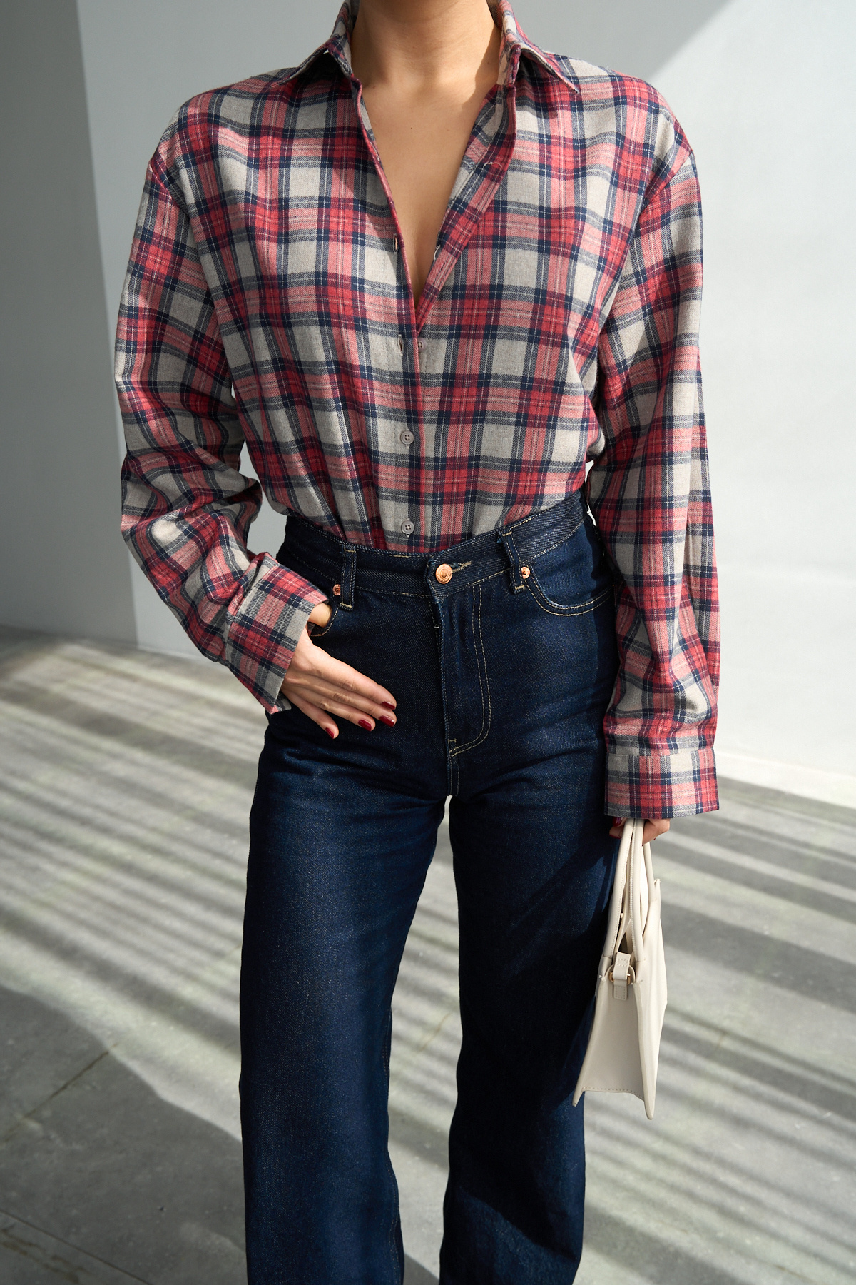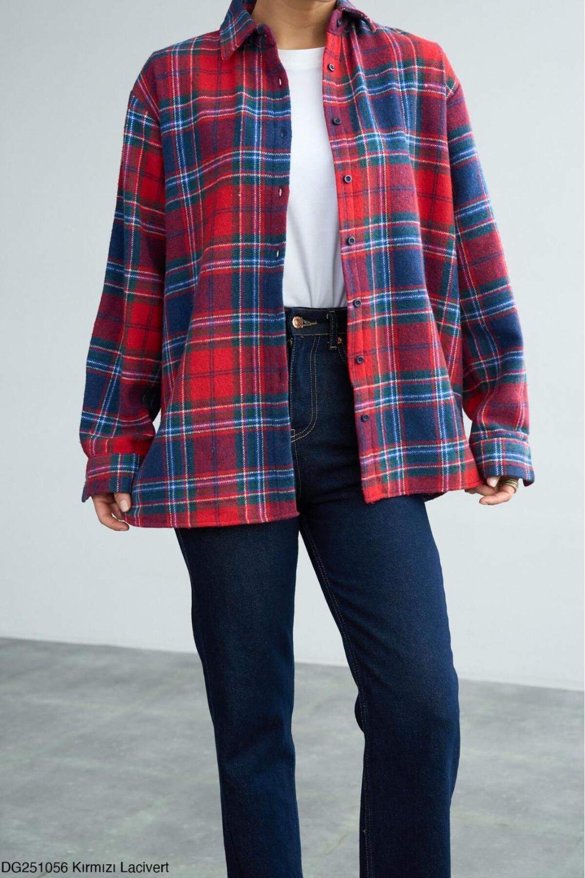 Kadın Kırmızı Ekoseli Pamuklu Oversize Gömlek Kadın Kırmızı Ekoseli Pamuklu Oversize Gömlek DG251057 Standart