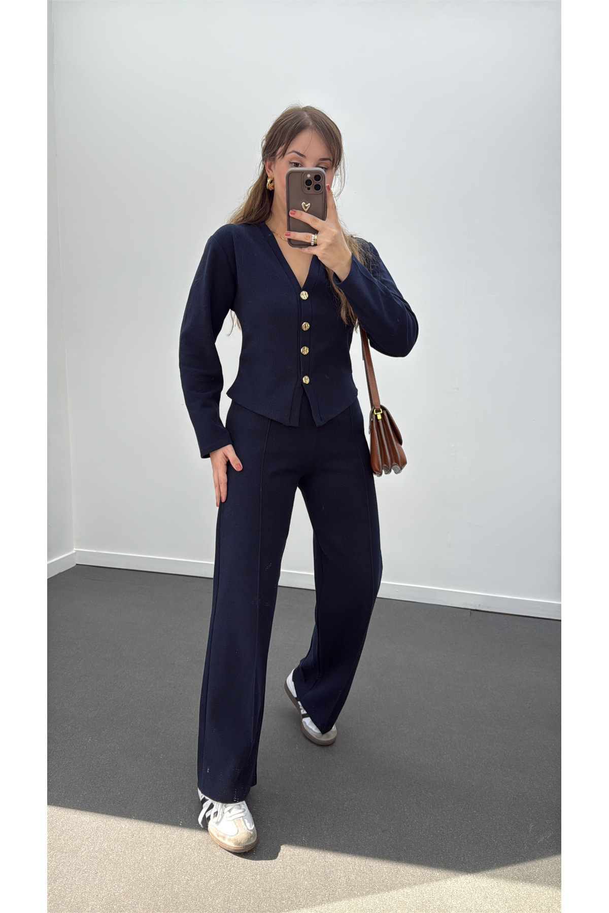 Freya Gold Düğmeli Hırka Ve Triko Pantolon Takım Freya Gold Düğmeli Hırka Ve Triko Pantolon Takım freya L