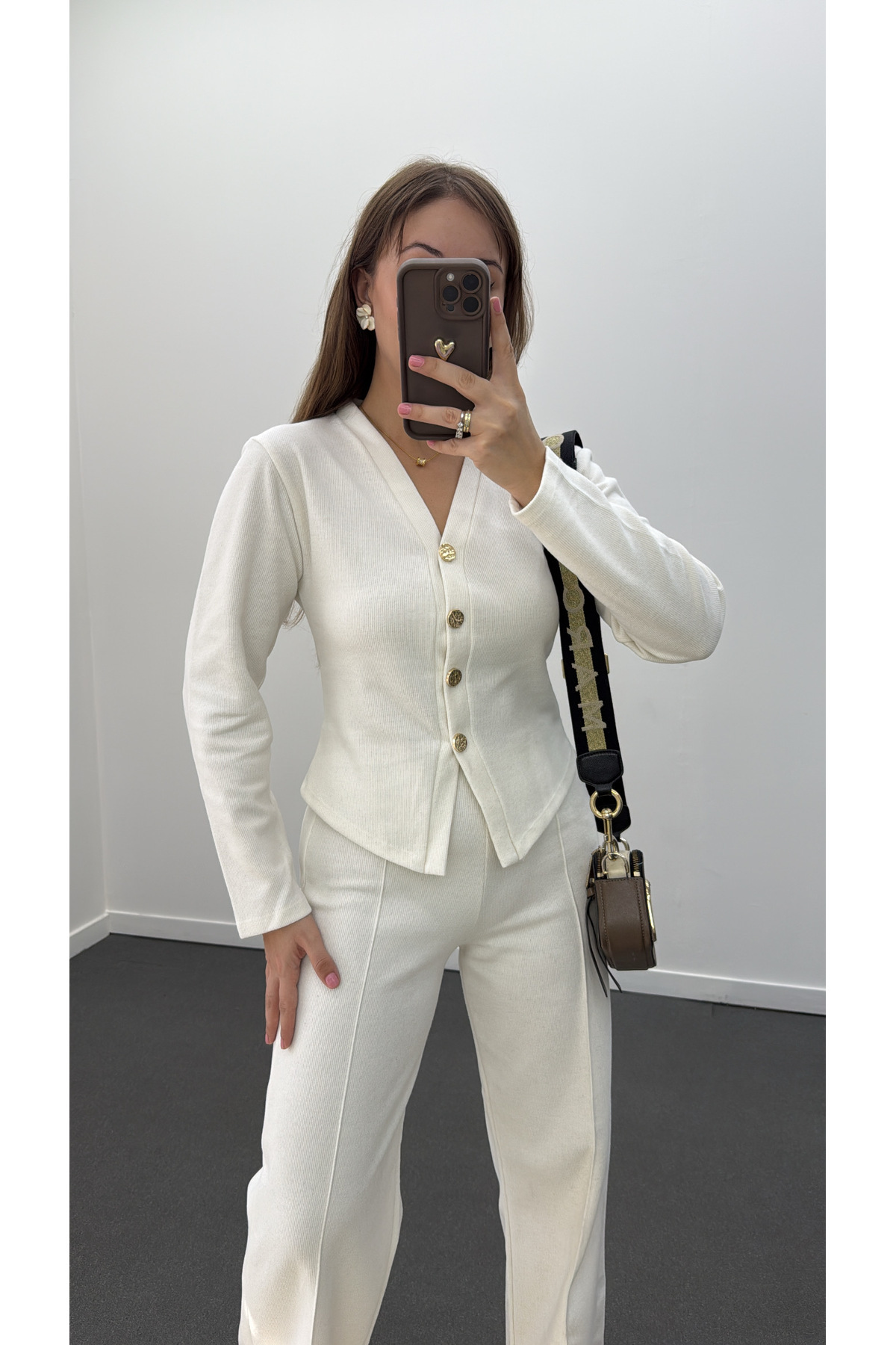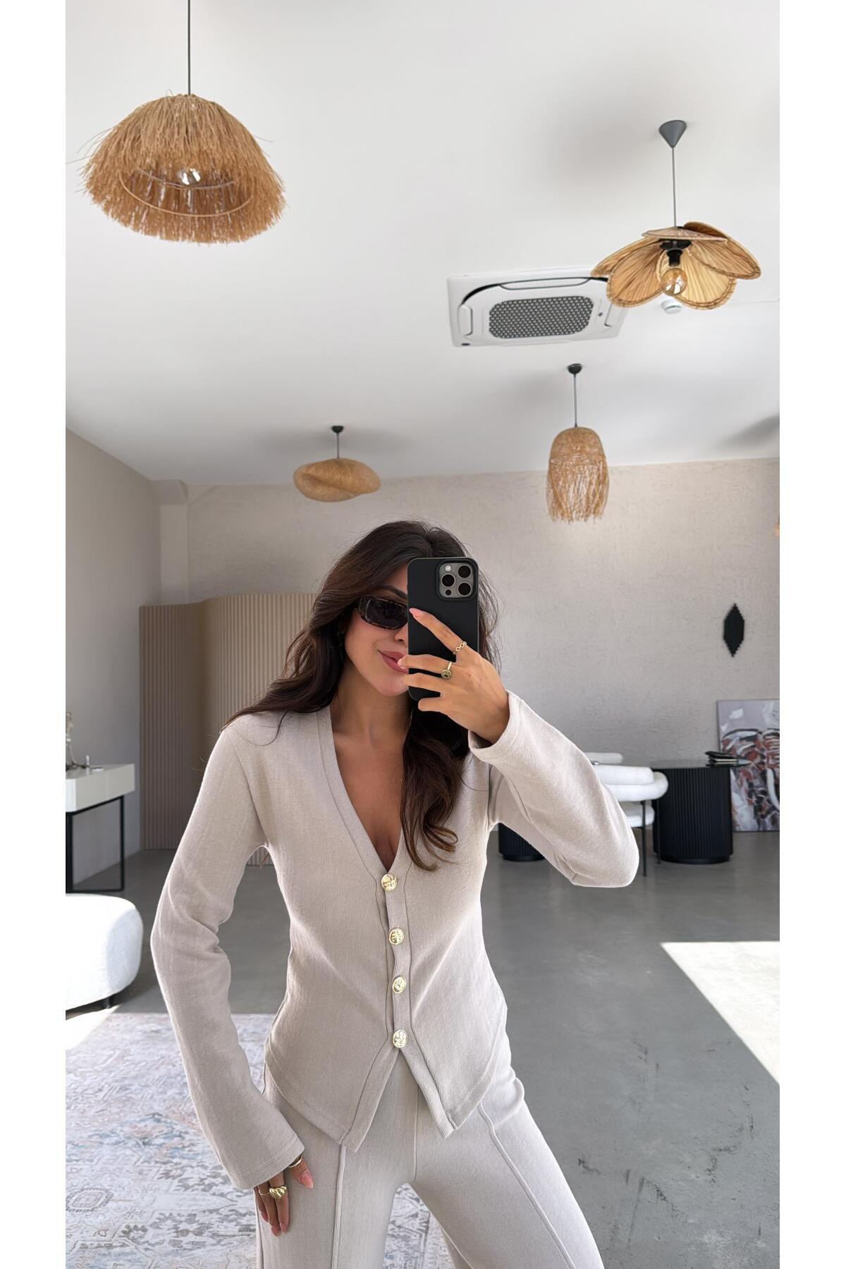 Freya Gold Düğmeli Hırka Ve Triko Pantolon Takım Freya Gold Düğmeli Hırka Ve Triko Pantolon Takım freya L