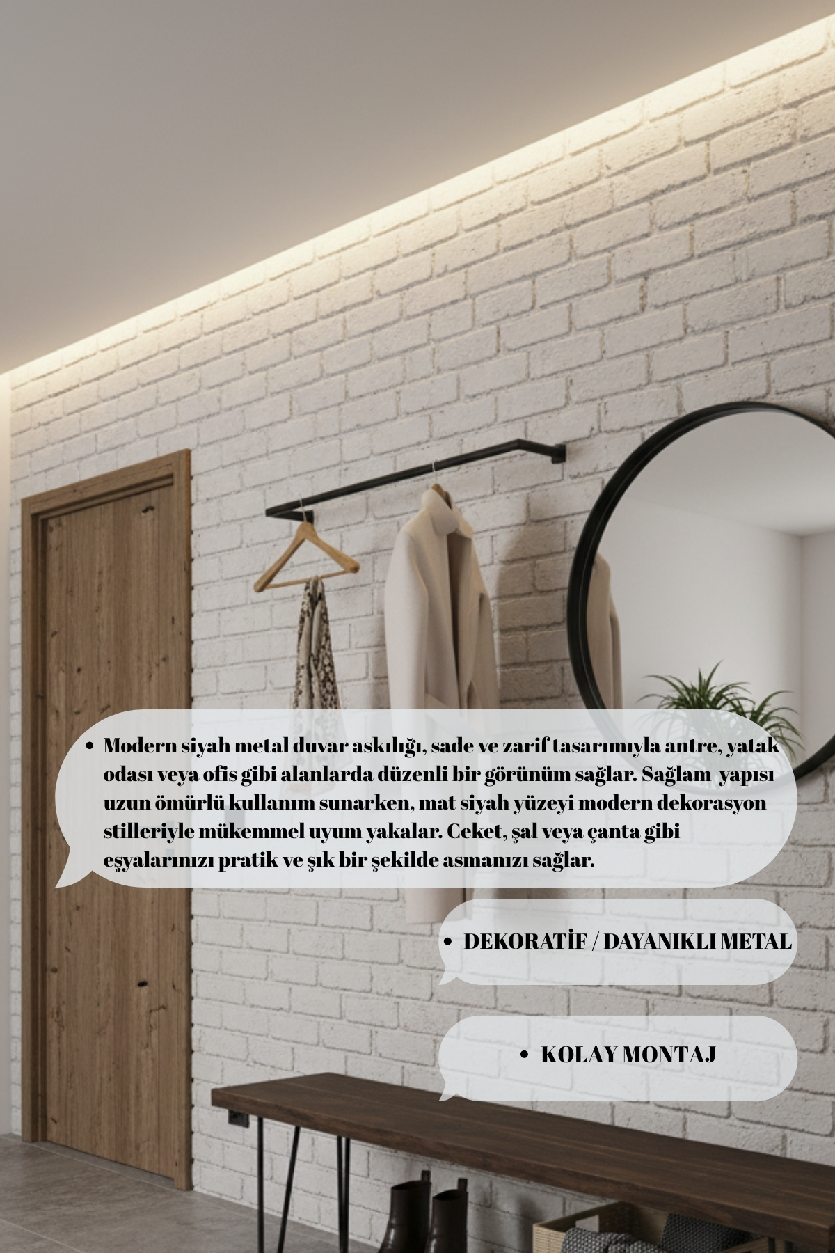 Modern Metal Duvara Monte Elbise Askılığı Yer Kaplamayn Dekoratif Duvar Askısı 100x25 cm Modern Metal Duvara Monte Elbise Askılığı Yer Kaplamayn Dekoratif Duvar Askısı 100x25 cm GH00065 تک سایز